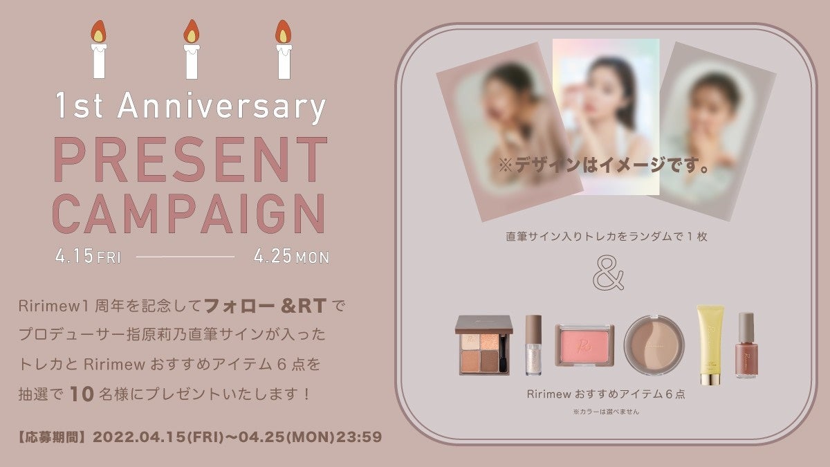 Ririmew公式Twitterでは、発売1周年を記念して本日4月15日(金)から4月25日(月)の間でプレゼントキャンペーンを実施。