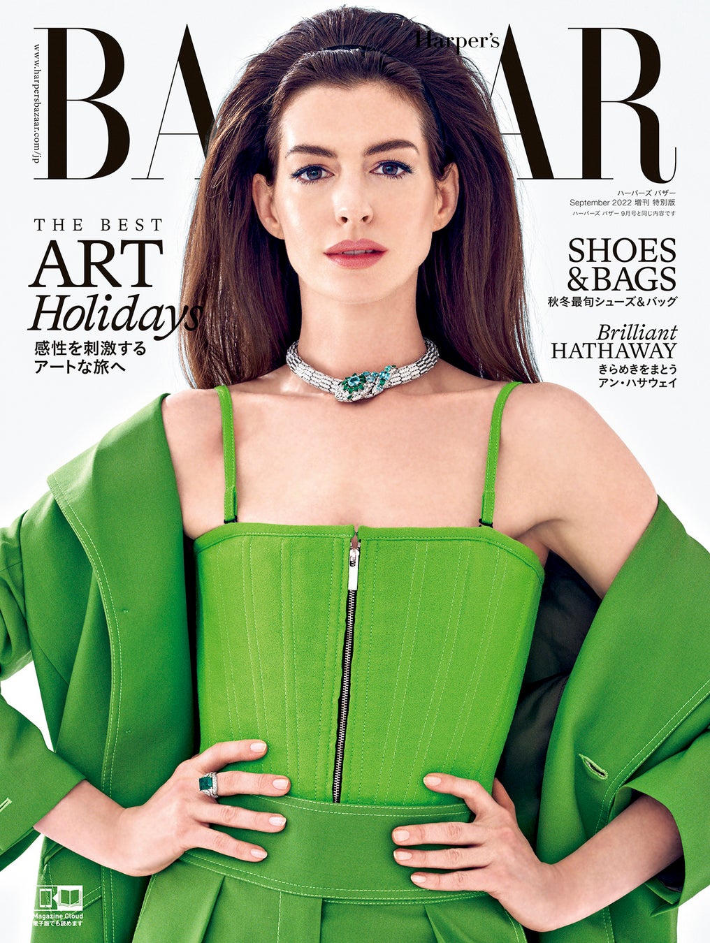 『ハーパーズ バザー』9月号は、宮脇咲良さんがカバーの通常版にくわえて、アン・ハサウェイがカバーを飾る「9月号増刊 アン・ハサウェイ特別版」も同時発売。本誌の特集では、永遠のアイコン、アン・ハサウェイがハイジュエリーを身につけて登場。スーパーセレブとダイヤモンドの美しき競演は必見です!『ハーパーズ バザー』9月号 増刊アン・ハサウェイ特別版は、7月20日に同時発売。