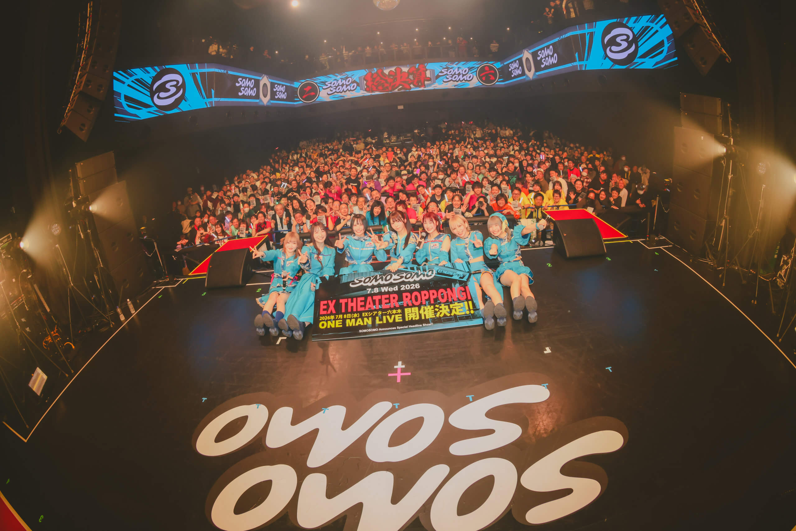 全メンバーの絶叫が止んだ直後、スクリーンにVTRが流れる。そこに映し出されたのは、次なる戦いの舞台。2026年7月8日、六本木EXシアターでの7周年記念ワンマンライブ開催が告げられた瞬間、会場はこの日一番のどよめきと歓喜に包まれた。