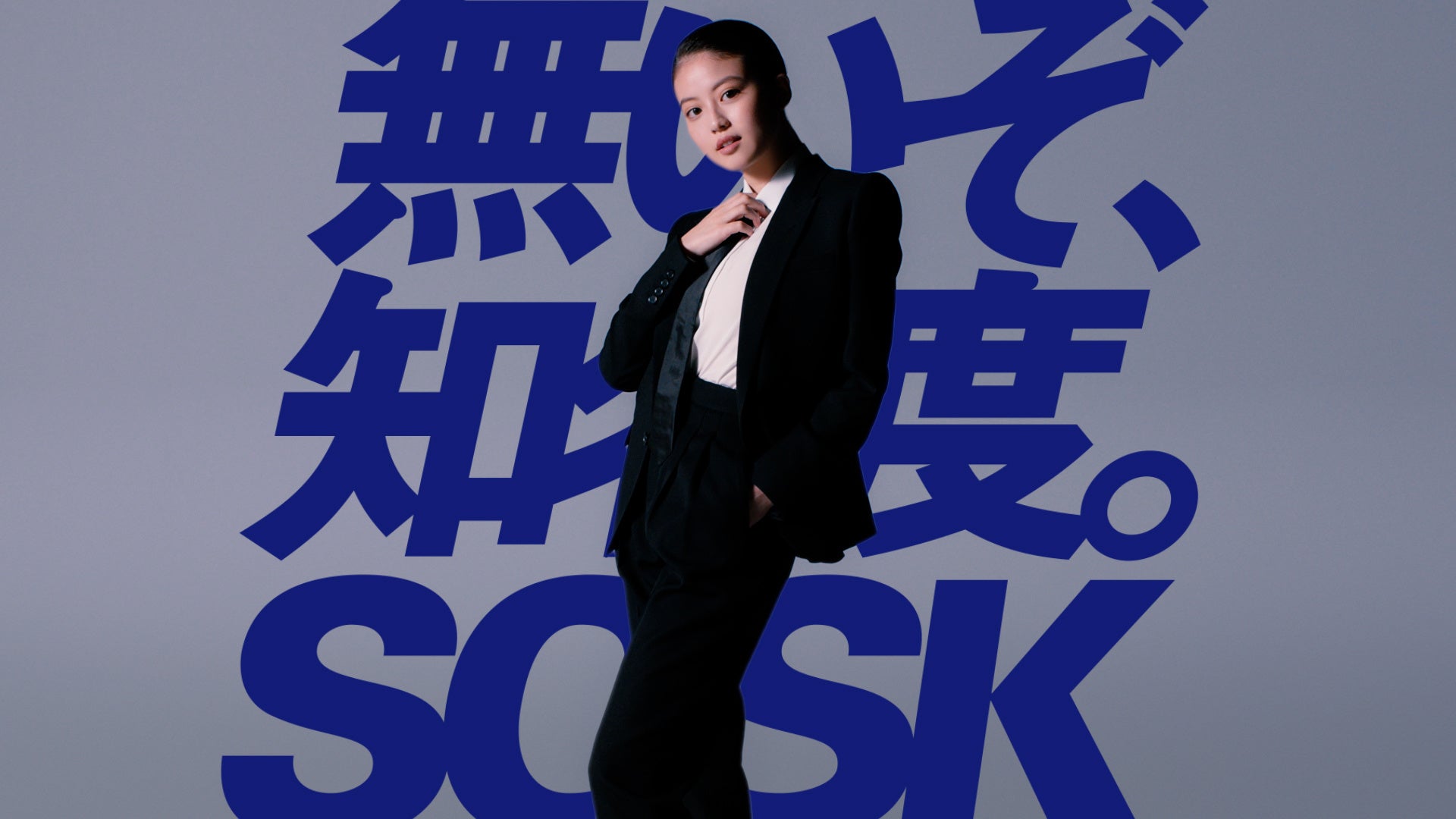 今田美桜がマニッシュなスーツスタイル&ヘアメイクで登場し、 「無いぞ、知名度。SCSK あるぞ、ITの可能性。SCSK」というコピーを歌うように口ずさみながら、クールなウォーキングを披露。1度聞いたらクセになるリズムに注目!