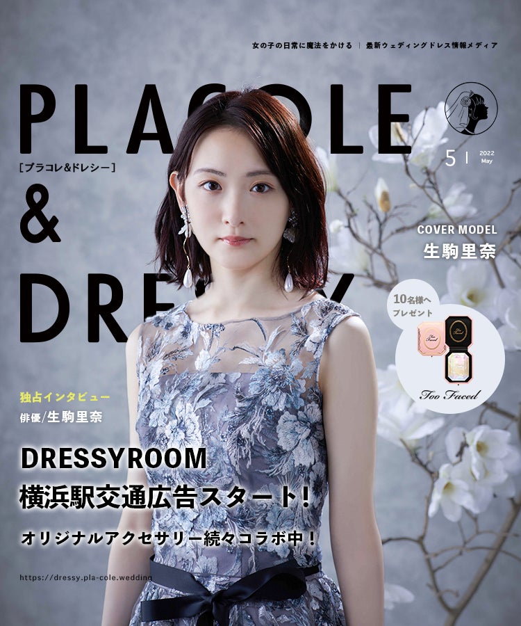 2022年5月号 PLACOLE&DRESSYのカバーモデルに俳優の生駒里奈が登場!ウェディングドレスに憧れるすべての人へメッセージを送る!