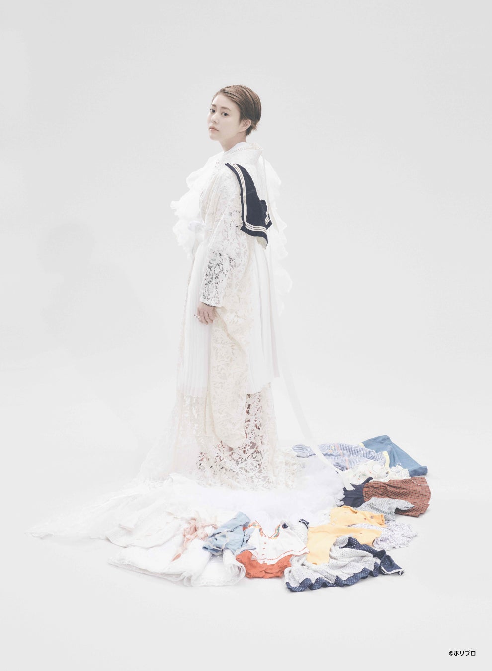 メインビジュアルのために作られた衣裳には、ベビー服や学生服など、主人公のゆりかの生きてきた様々な時代が詰め込まれている。