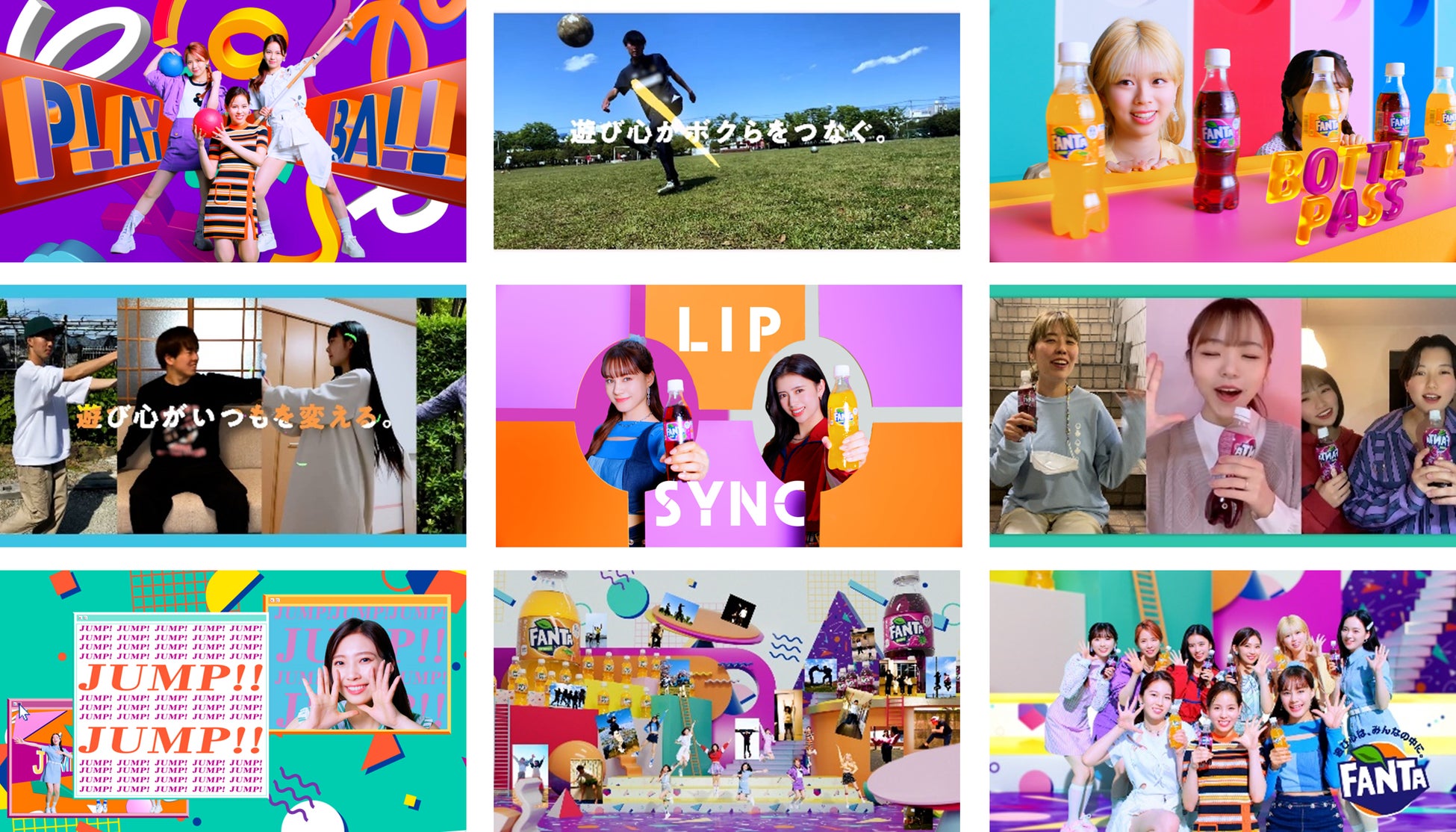 メンバーカラーの衣装を身にまとい、「ファンタ グレープ」を一口飲んでやる気が満ちたNiziUメンバー9名が、ボトルを片手にそれぞれ決めポーズで発する「We are players!」という掛け声から“遊び”がスタート。“遊び”のテーマは、『プレイボール』、『ボトルパス』、『リップシンク』、『ジャンプ』の4つで、テーマごとに、メンバーからのアクションと一般の方の投稿動画が連動していく。ボウリングやドッジボールなどでメンバーから放たれたボールをみんなが打ち返す『プレイボール』篇で始まり、「ファンタ」のボトルをバトンがわりに次々とパスする『ボトルパス』篇、ボトルをマイクに見立てて歌う『リップシンク』篇、NiziUもみんなも元気よくジャンプする『ジャンプ』篇と続く。それぞれのシーンでNiziUと皆さんが“遊び心”でつながり、「ハジける仲間」がいることで何気ない毎日が楽しくなっていく様子にあふれたCMとなっている。