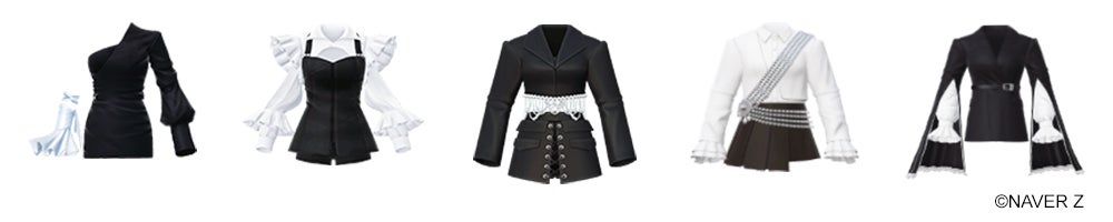 ITZYのカリスマ性を象徴するようなブラック&ホワイトのスタイリングが特徴的なコンセプトの衣装を、ZEPETO内ではドレス/シューズ/ヘア/イヤリング/ネイルのカテゴリで展開する。憧れのメンバーと同じスタイリングを楽しめるだけでなく、ユーザーが個性を活かしてそれぞれのアイテムを使ってコーディネートをするなど、ユーザーの個性と創造力を掻き立てる新感覚のヴァーチャルファッション体験を提供する。