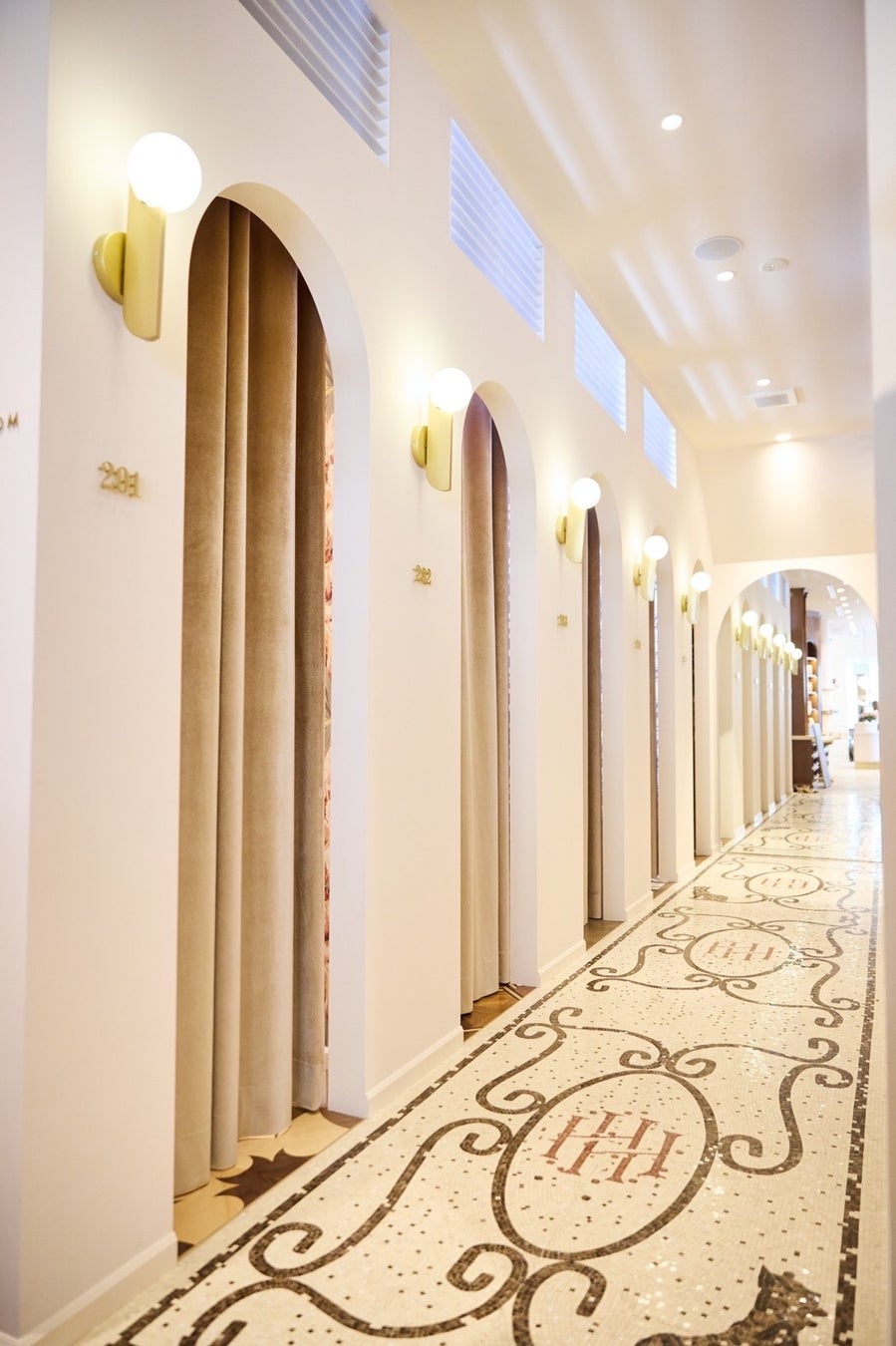 ブティックホテルの客室をイメージしたDRESS ROOMは部屋ごとに壁紙や床のタイルが異なり、インテリアにこだわりを持つ小嶋が実際に国内外を旅して受けたインスピレーションをたっぷり落とし込んだ、ブランドの世界観をより体感できるエリアとなっている。
