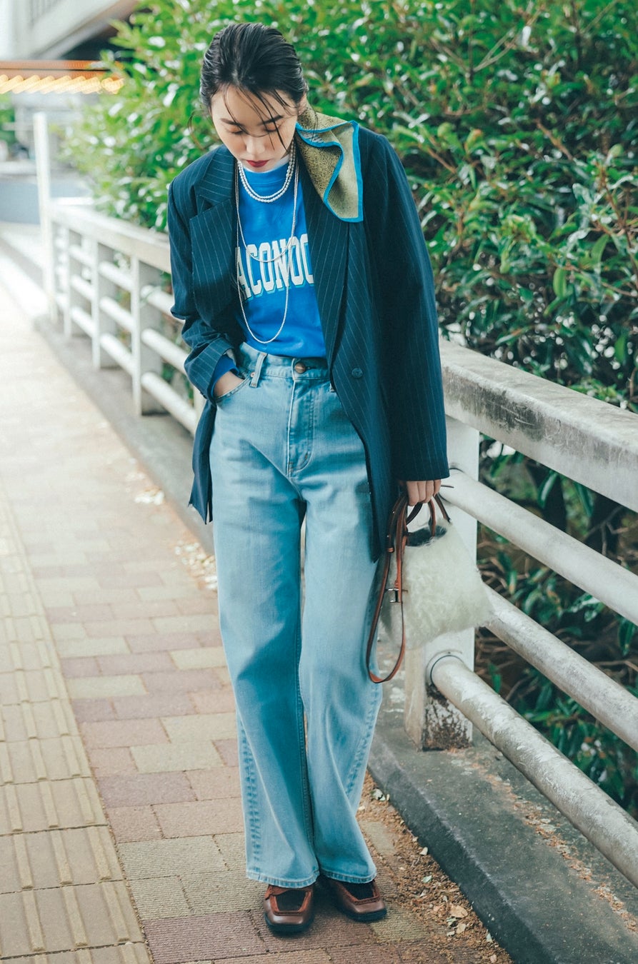 今シーズンたくさん見かける太めのパンツにも相性よし