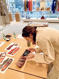 打ち合わせを繰り返すこと約10か月。素材選びと組み合わせは直前まで悩み、「シミュレーションでは3つのデザインを候補に残しましたが、最終的には今回のデザインに即決。ツヤのあるボディのスムースレザーに、華やかな赤茶スエードのトリミング、アッパーのシーズナブルなコーデュロイ。完璧なバランスで仕上がっていると思います!」と、本人も納得の出来栄え。