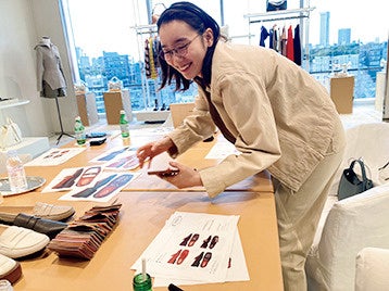 「大好きな“TOD’S”とコラボできると聞いて真っ先に浮かんだのがローファーでした。ブランドの看板アイテムのひとつですし、私のワードローブの昔からある相棒でもあります。できるだけたくさんの方に手にとってもらいたいと考えて、こだわったのはまずベースになる色味。次にトウ。それから素材感です」