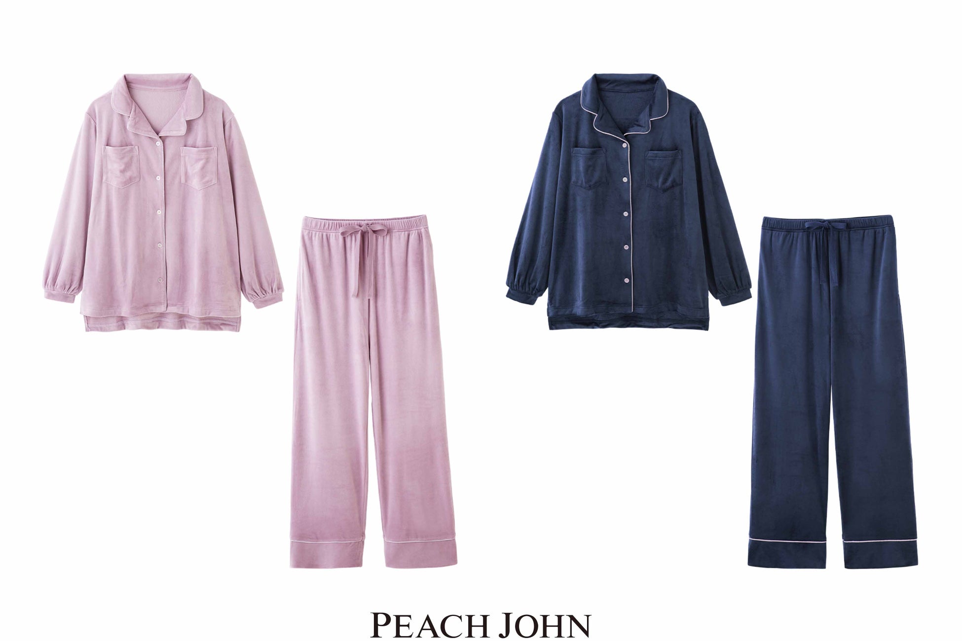 ストレッチ性のある生地でストレスフリーな着心地のベロアパジャマ。新作のベロアシャツパジャマは裏起毛加工を施し、よく伸びるストレッチベロアを使用しているのでお部屋でも動きやすい。可愛らしい色味のピンクと、ベーシックなネイビーの2色展開です。