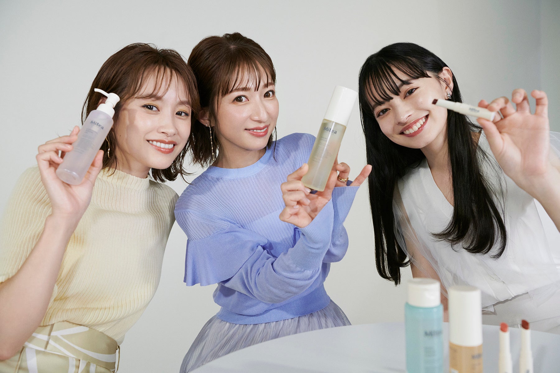 「ミティア オーガニック」のお気に入りポイントや、3名のスキンケアへのこだわりなど、ここだけでしか見られない特別な内容となっている。