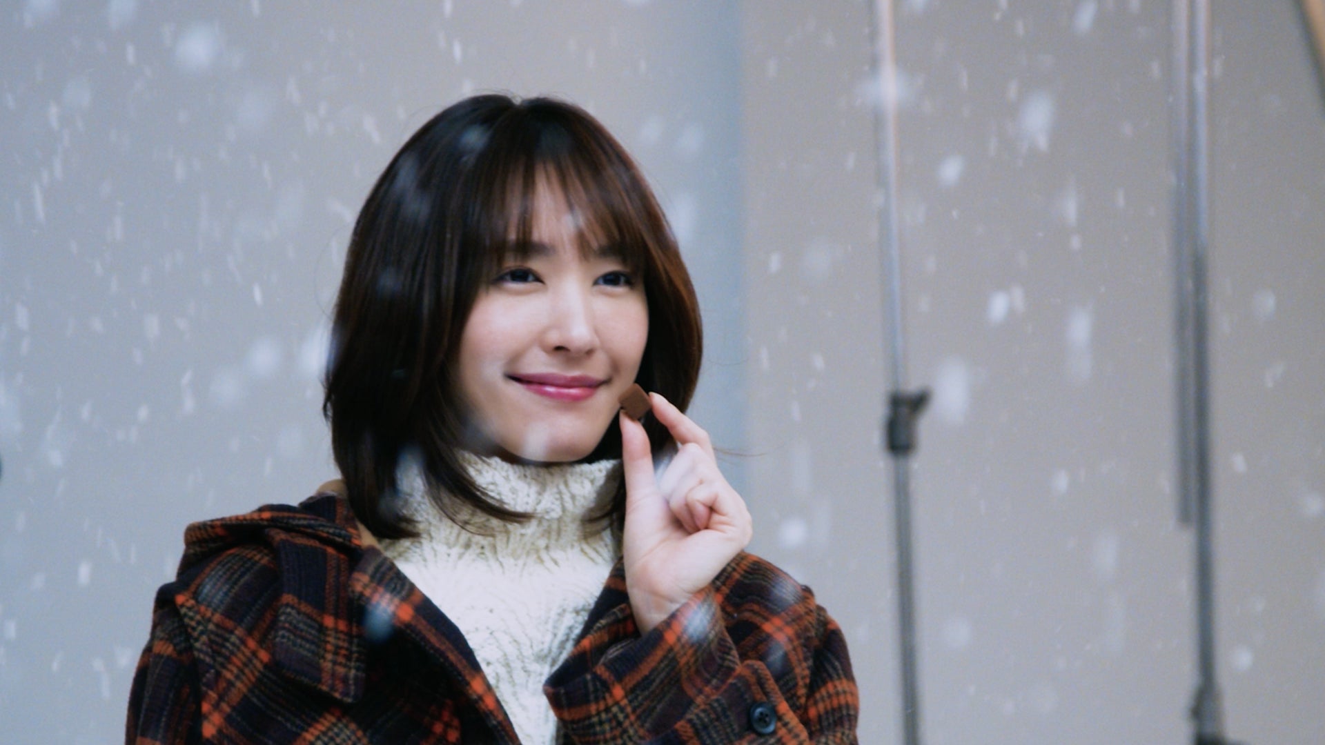 新垣:今回は2パターン撮影をしたんですけれども、キャッチコピーが『冬がくちどけちゃう前に』という方の撮影は今までのようなザ・メルティーキッスの世界観で雪を降らせながら、あっという間にくちどけてしまう、なくなってしまう切なさを表現してほしいということで頑張りました。