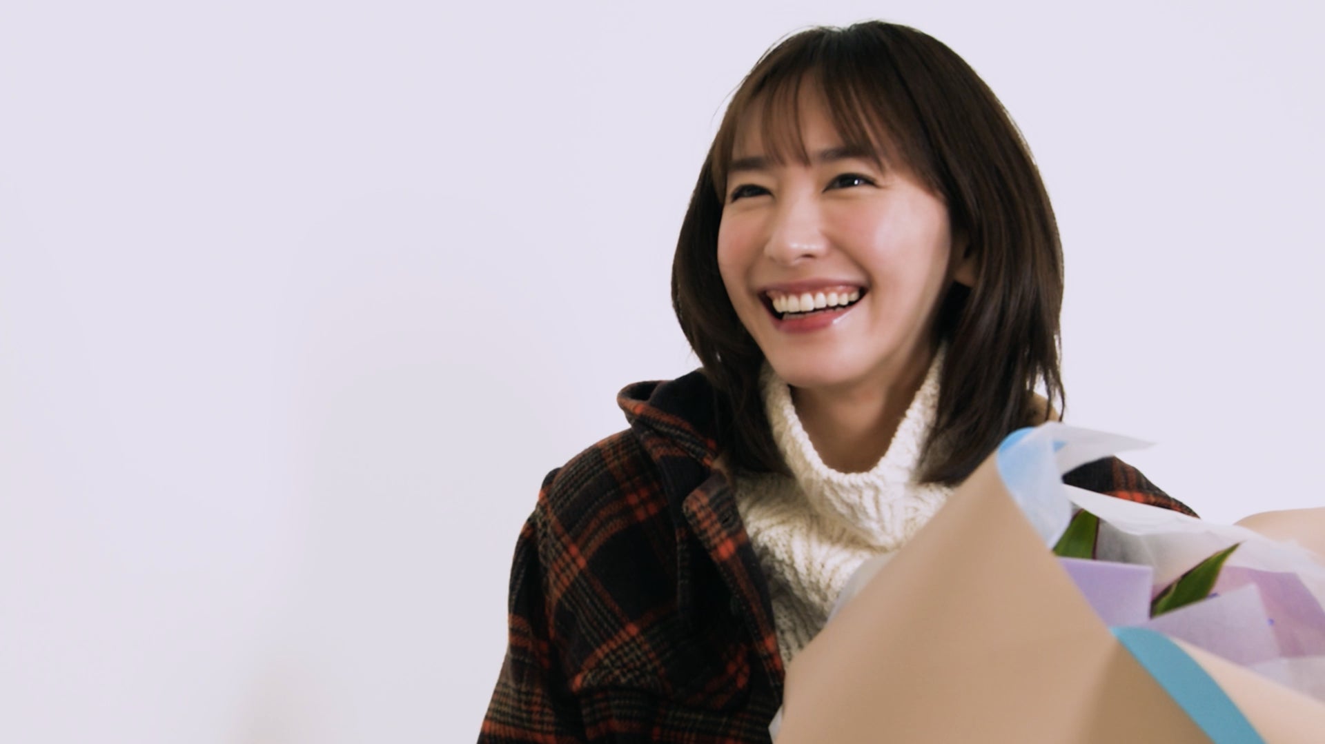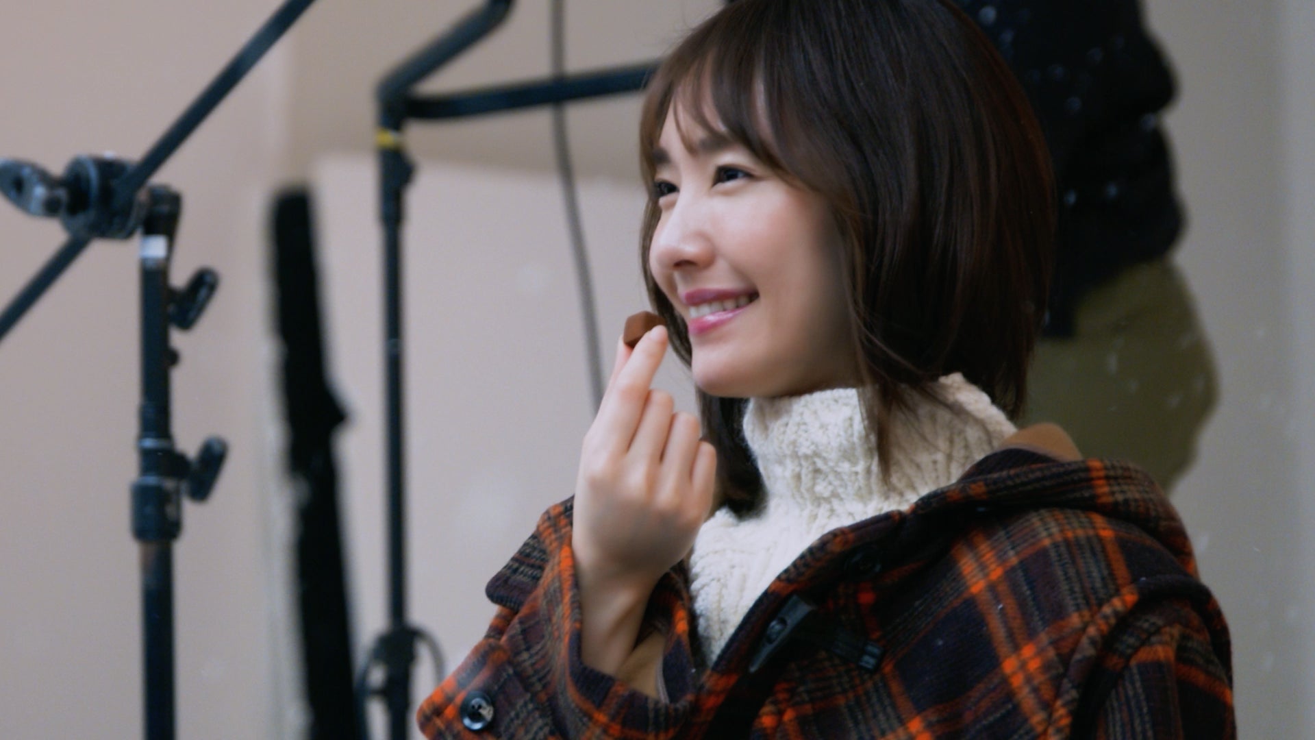 「コート着て、チョコレート買いに行こ。」篇では、コートを着るカットが、どのポーズも可愛くて思わずたくさんのポーズをお願いしてしまったが、笑顔で応える新垣。今年も今回の撮影のために制作されたメルティーキッスオリジナルのダッフルコートを着用、セーターも手作りということで感動しているようだった。