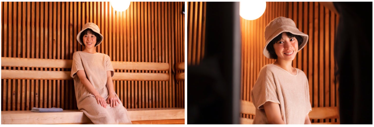 朝イチで撮ったサウナのシーンは、暑くないようにしていただいてのですが、サウナが作動していた名残でまだほんのり温かくて。サウナは普段から好きでよく行くので、朝からサウナに入った気分になりとても心地よかったです。