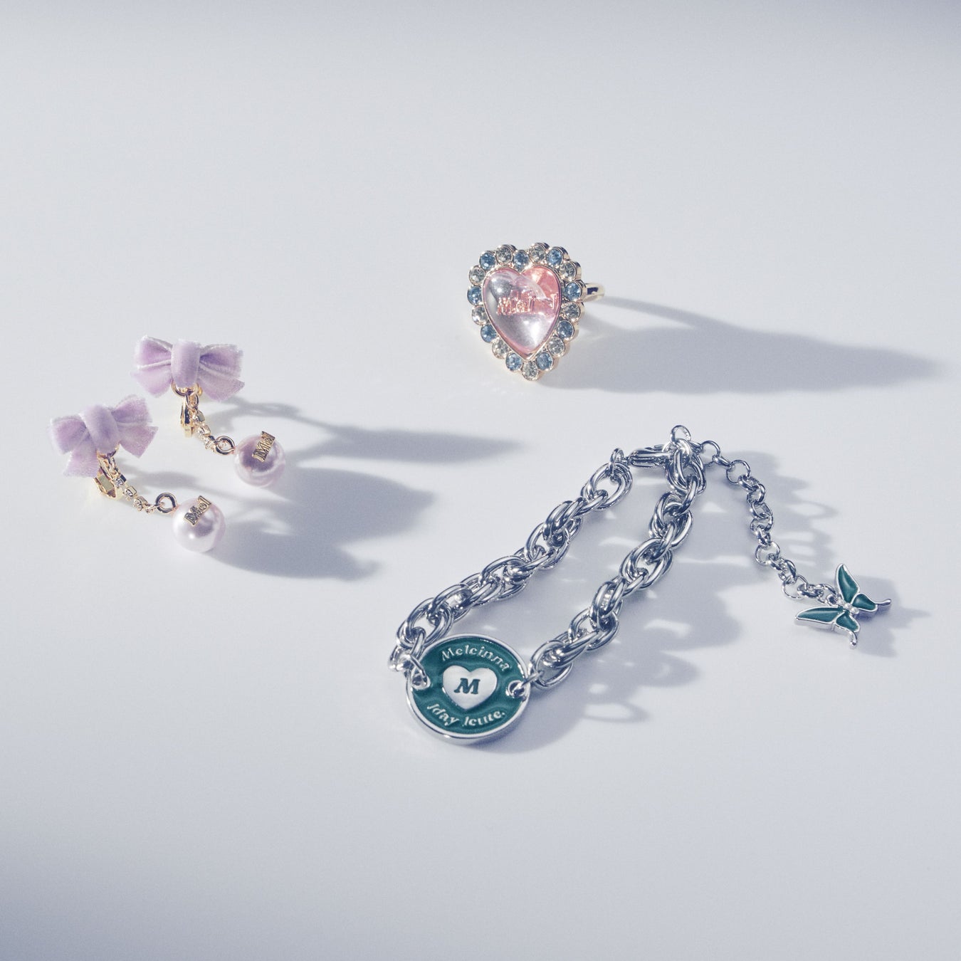 【Mel cinna × Shefar】コラボ第一弾で大反響だったネックレスをリデザインし、今回は「Pipiel -Eau de parfum-」のモチーフカラーをあしらったリングをお届け。ハートストーンを囲うカットストーンが、手元をより華やかに魅せてくれます。