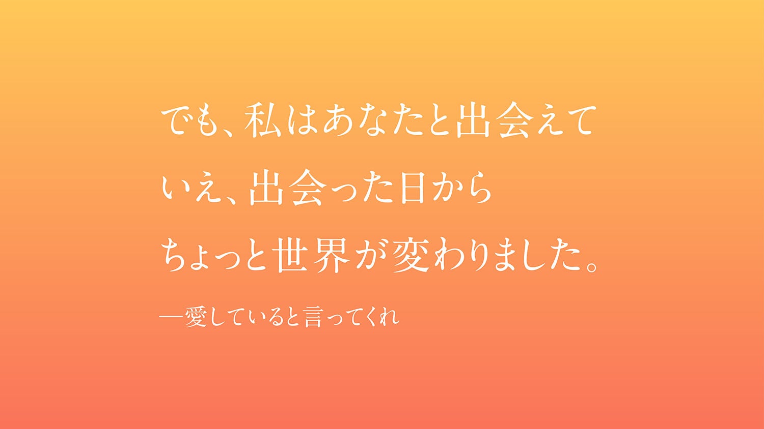 16時-18時以外の時間帯では、当時の感動を思い起こしてもらうため、脚本を担当する北川悦吏子氏が過去に脚本を手がけたTBSの恋愛ドラマである「愛していると言ってくれ」、「Beautiful Life ~ふたりでいた日々~」、「オレンジデイズ」から抜粋した名台詞を掲出いたします。