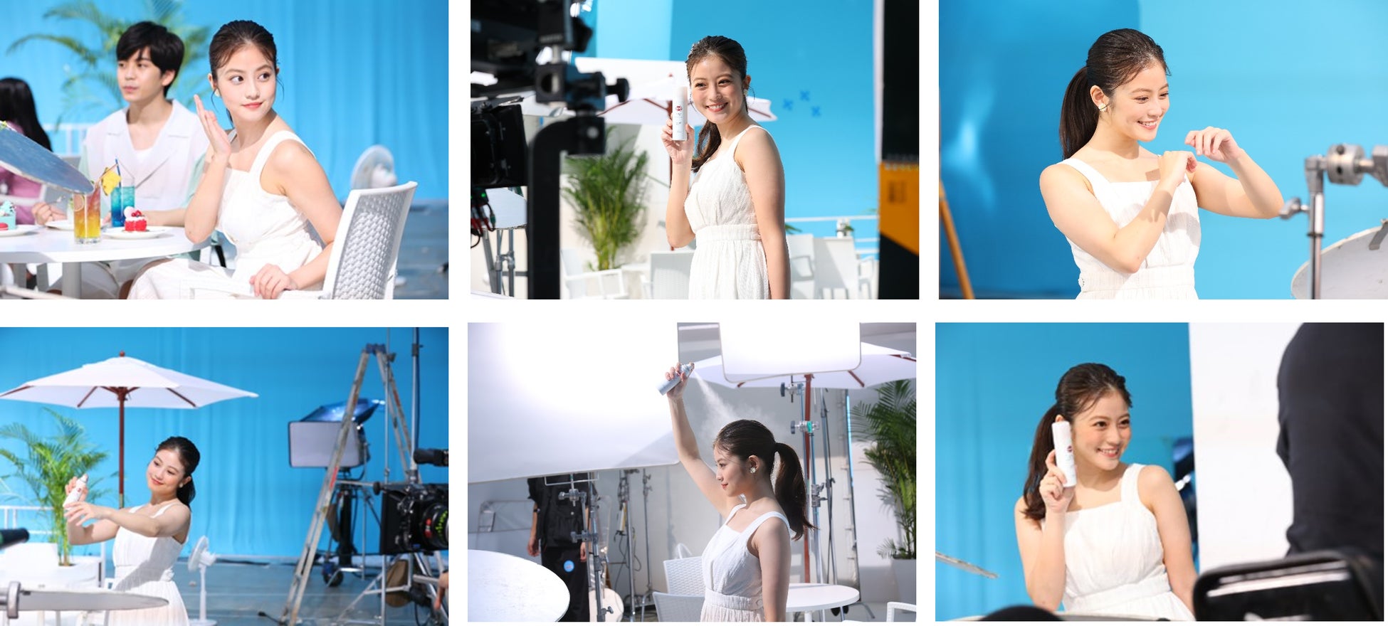 新CM『サンカット® 友人とおでかけ』篇では、夏らしく背中が大きくあいた真っ白なワンピース姿の今田が登場。太陽が照りつける青空の下、ポニーテールを揺らしながら振り向き「スプレーの日やけ止め使っている?」と呼びかける今田。外出時でも手を汚さずに日やけ対策ができるスプレータイプの使用感を紹介するCMとなっている。本商品をプライベートでも使用しているという今田は、慣れた手つきで頭、腕、足と広範囲に振りかけ、監督から「いいね!」の声が上がる場面も。夏の暑い日差しが照り付ける中、今田の凛とした表情や時折見せる華やかな笑顔は必見!!!