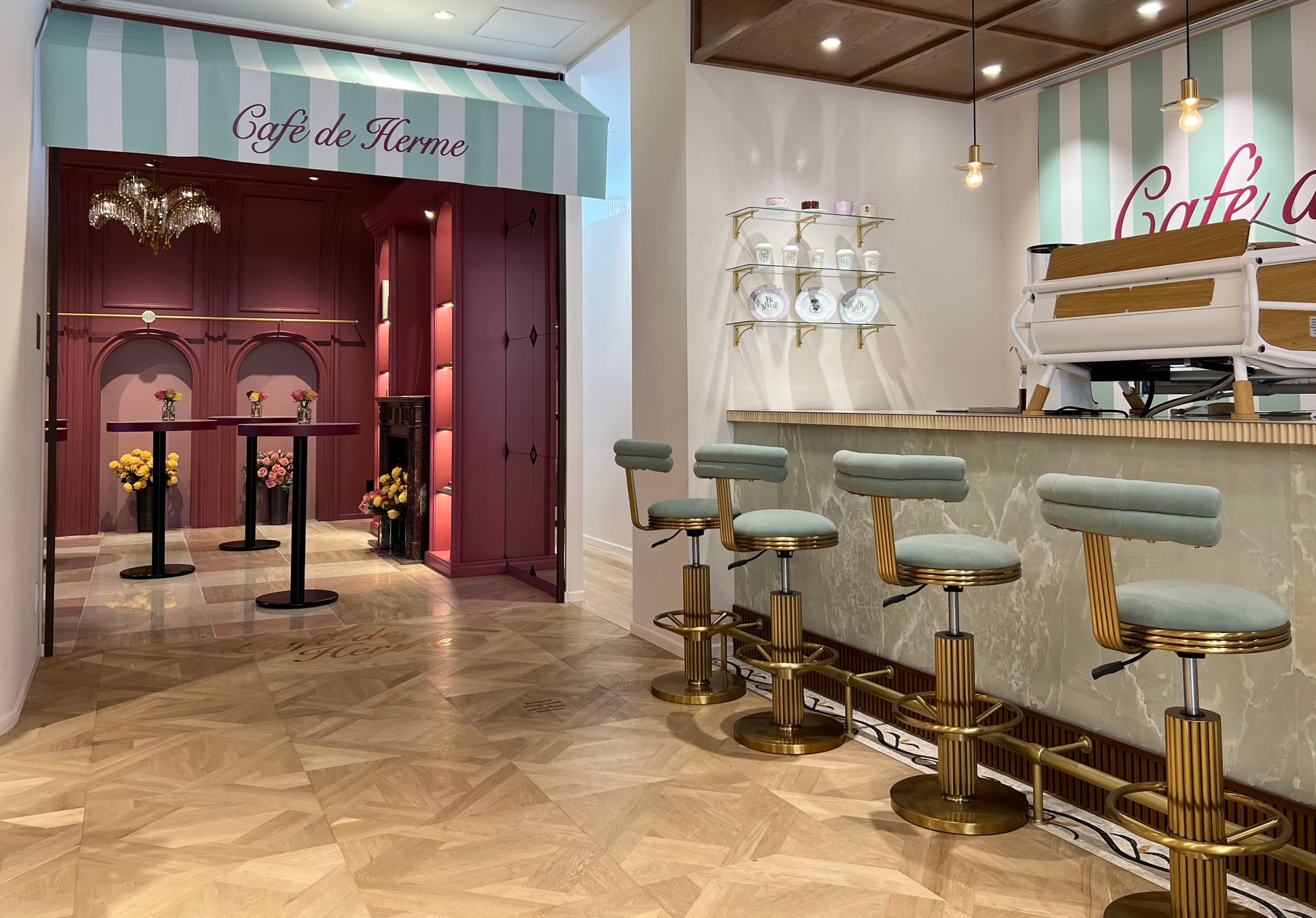 また期間限定で、House of Hermeのsuite roomがラズベリーピンクとミントグリーンの配色が心躍る特別なイートインスペースに。ドリンクやアイスの飲食をお楽しみいただけます。