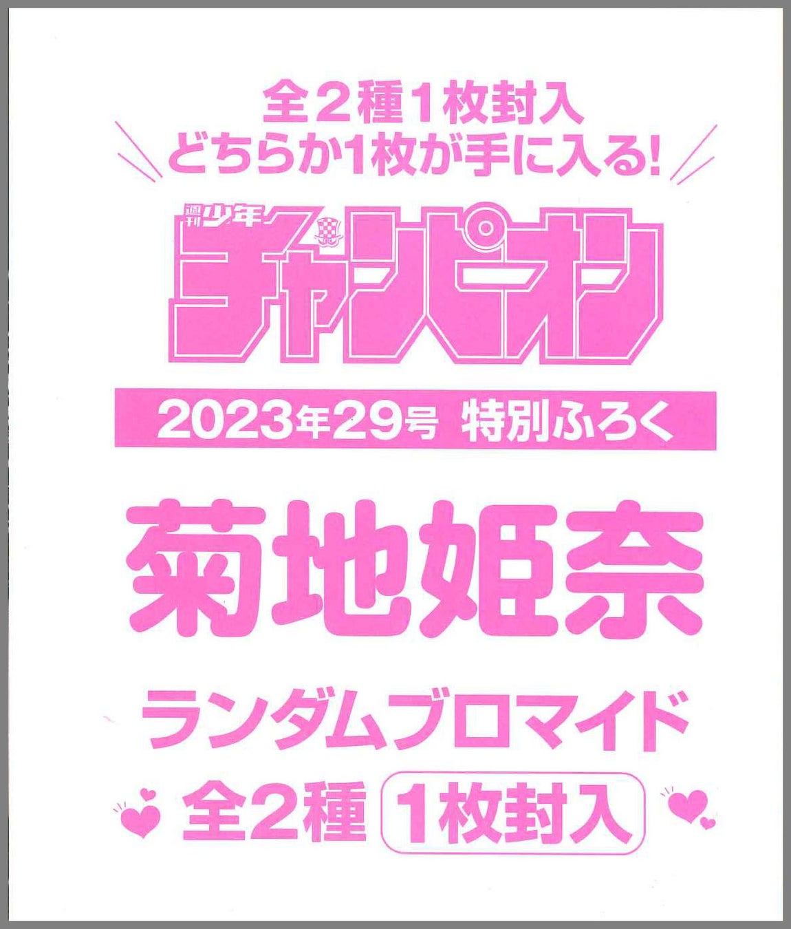 『週刊少年チャンピオン』6月15日(木)発売の29号の表紙&巻頭撮り下ろしグラビアに菊地姫奈が登場!
