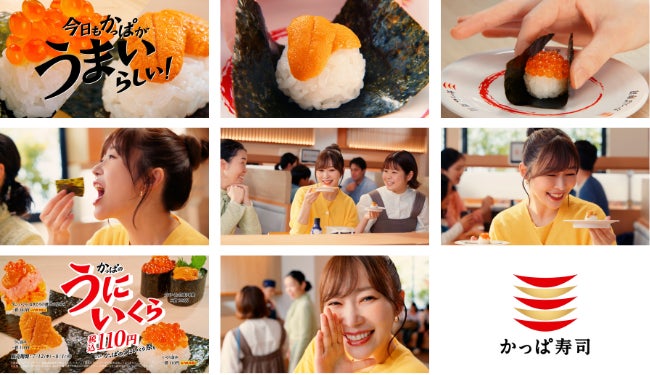 かっぱ寿司のCMキャラクターの指原莉乃が出演する新CM、「今日もかっぱがうまいらしい!」シリーズ 第一弾「かっぱのうにいくら110円篇」を2023年7月12日(水)より放映開始!2023年のTVCMも引き続き、指原莉乃が出演!