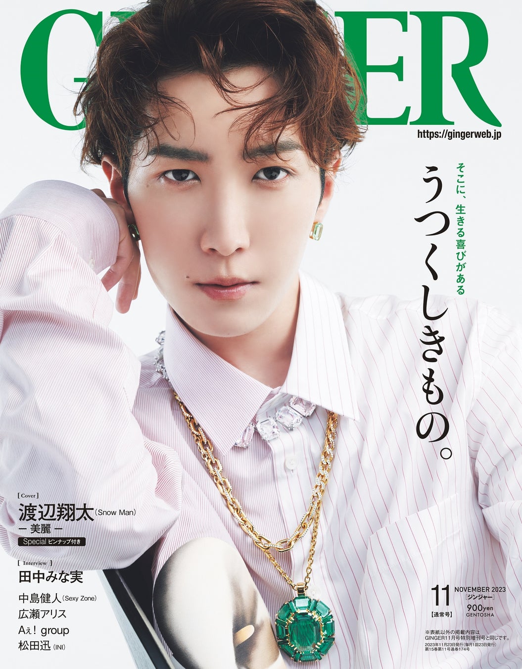 9月21日(木)全国発売のGINGER2023年11月号には、編集部の熱烈なオファー2年を経て、渡辺翔太(Snow Man)がソロカバーをついに飾る!