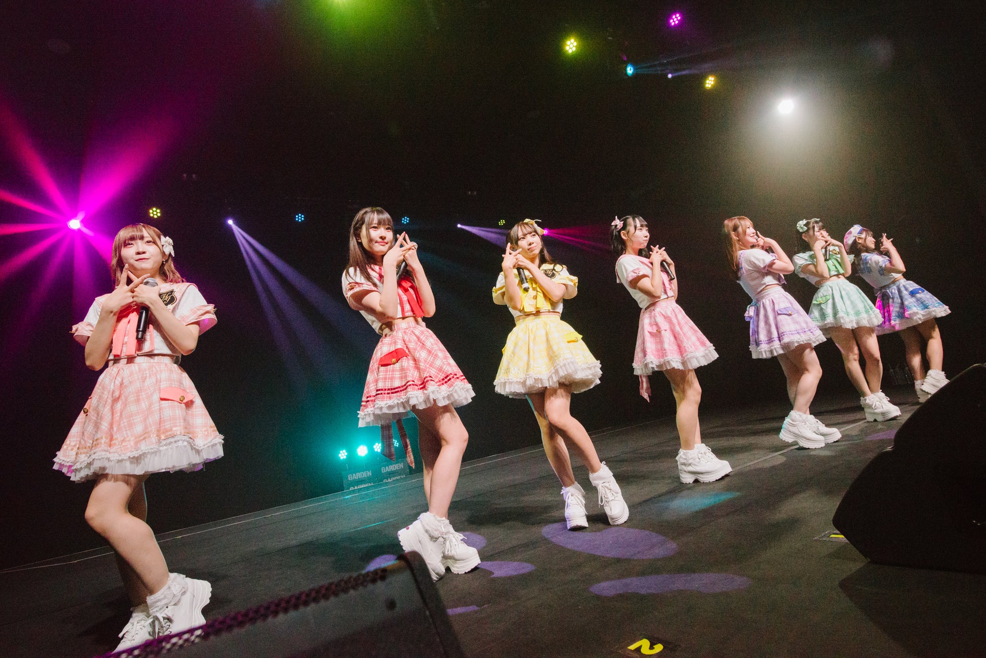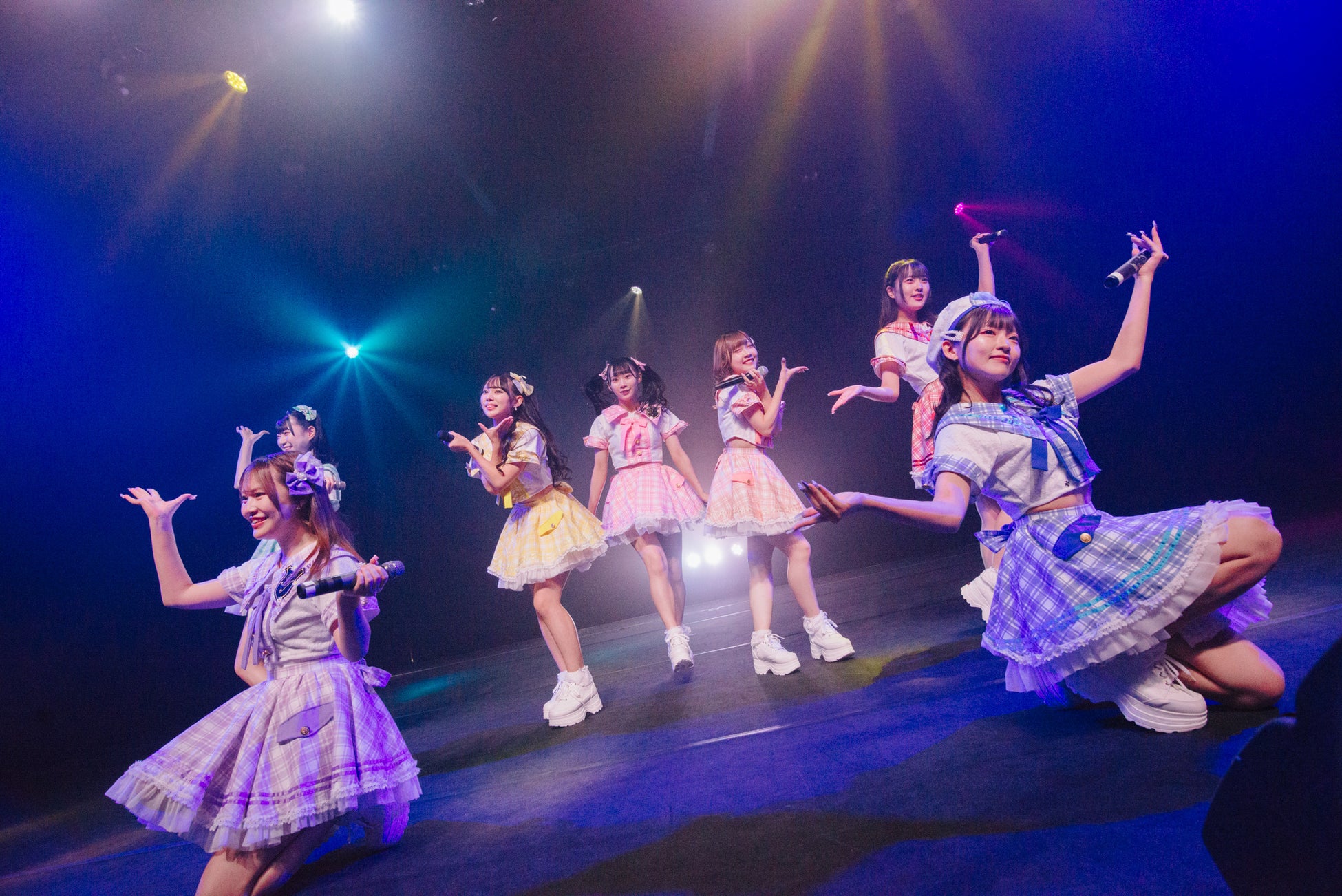 2曲目は「キュンなんです。」かわいさ全開で、超王道アイドルのド真ん中を突き進んでいく。会場は、温かい空気感で7人の新生花いろはを包み込んでいき、7色のペンライトが色とりどりに振られ一気に盛り上がる。そして7人もそれに応えるように全力パフォ―マンスで応えていく。