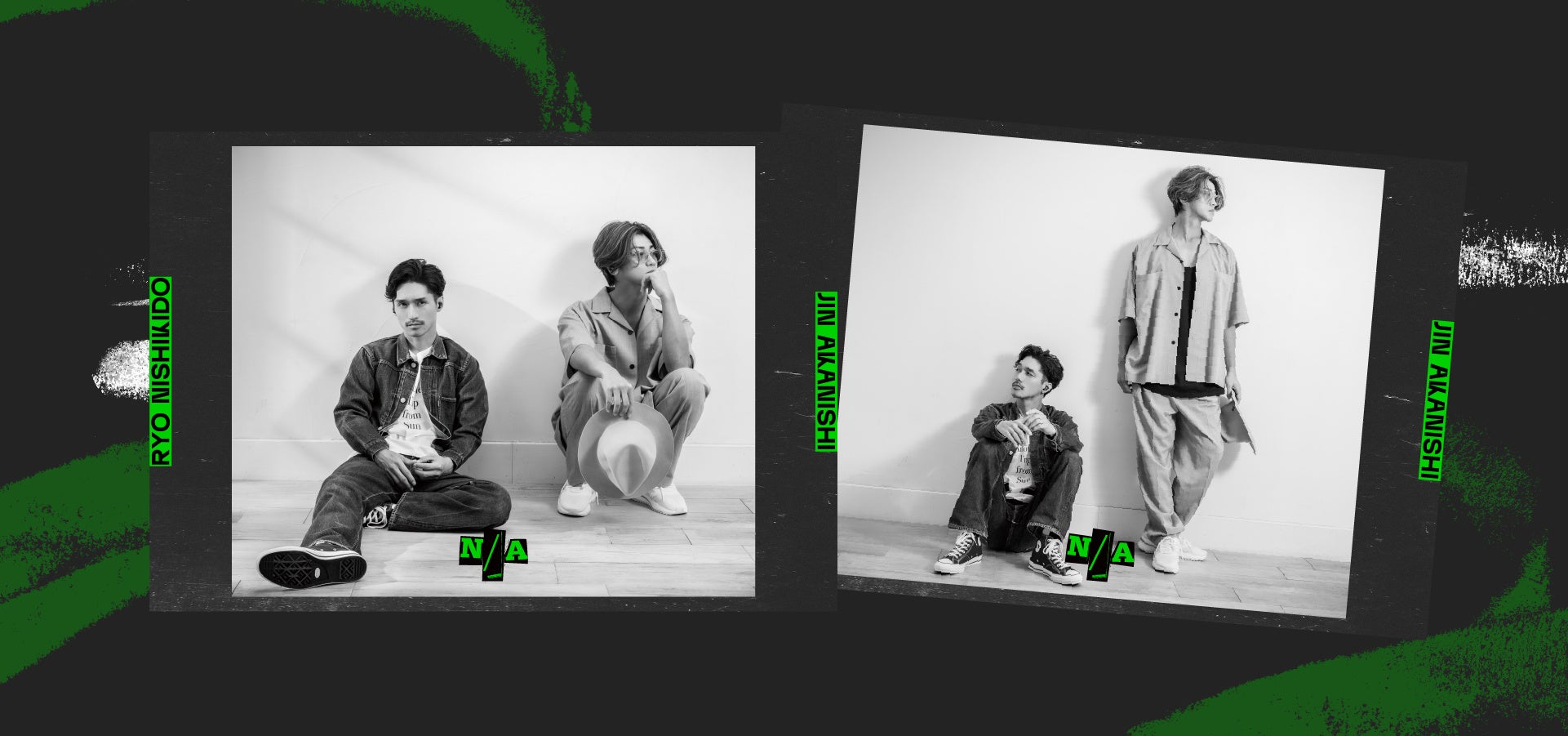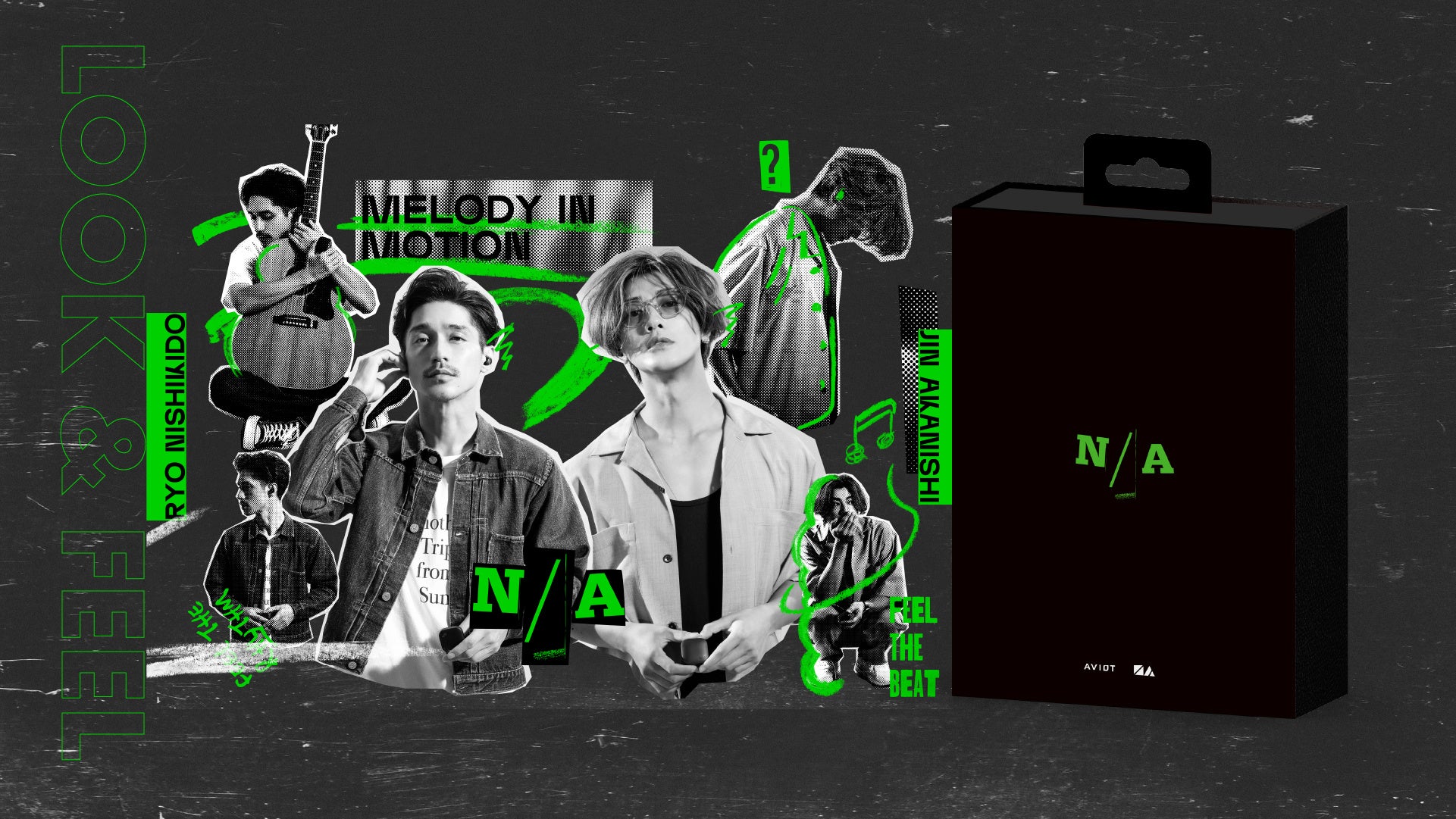 音楽を楽しんでいる二人の自然体の姿を、クールで遊び心のあるフォトコラージュで表現した特別なパッケージ。N/Aらしいブラックをベースに、差し色としてエネルギッシュなネオンカラーをあしらい、”いま”の二人らしさを反映しました。