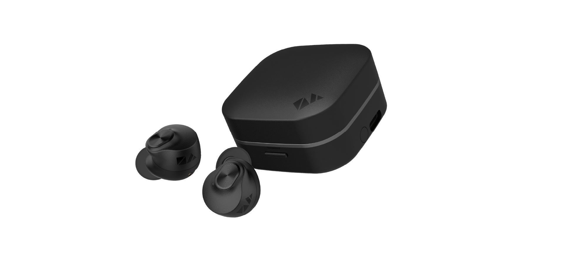 本体にはシックな印象を演出するマットコーティングを施しました。イヤホン本体のマルチファンクションボタンにはメタルブラックを採用。質感のコントラストで、マットブラックのボディの美しさをより際立てます。さらに、左側ボタンとチャージングケース上部にはN/Aのシンボルロゴを刻印。