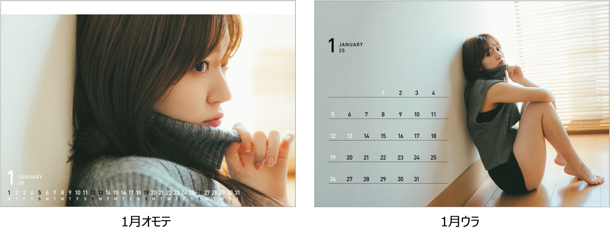 本カレンダーは、1月始まり壁掛けカレンダーの未公開カットで構成されており、写真の被りは一切ありません。