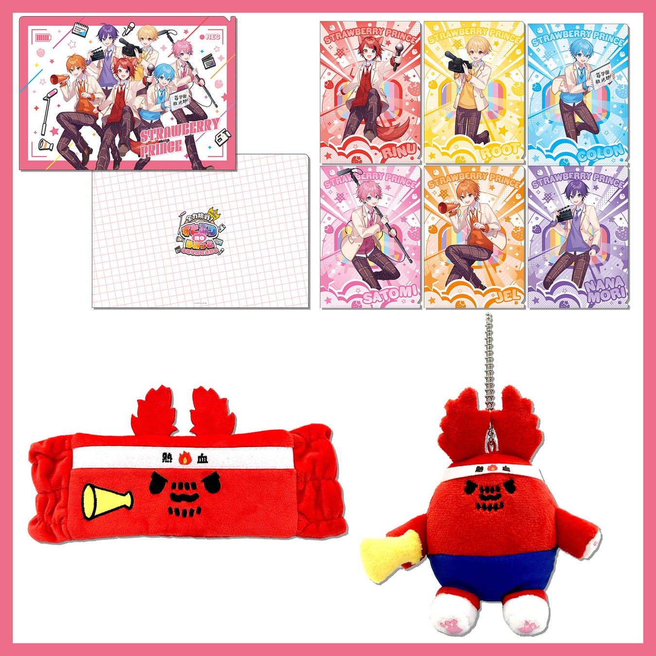 このたび、番組のオフィシャルグッズが本日午後5時より販売を開始しました。今回は「すとぷり」メンバー全員集合したA4クリアファイルと、メンバー6人それぞれがデザインされたランダムA5クリアファイルに加えて、苺学園放送部の顧問・熱血ボスうさのヘアバンドとボスうさマスコットが登場!