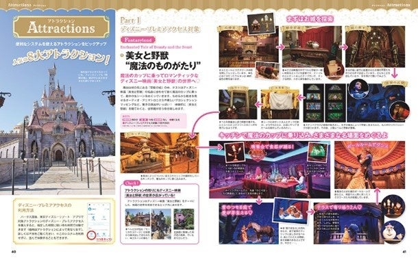 たとえば、アトラクションのページでは、パークに行ったらまず乗りたい人気の8大アトラクションを筆頭に、全アトラクションを解説。順を追って説明しているからわかりやすい!