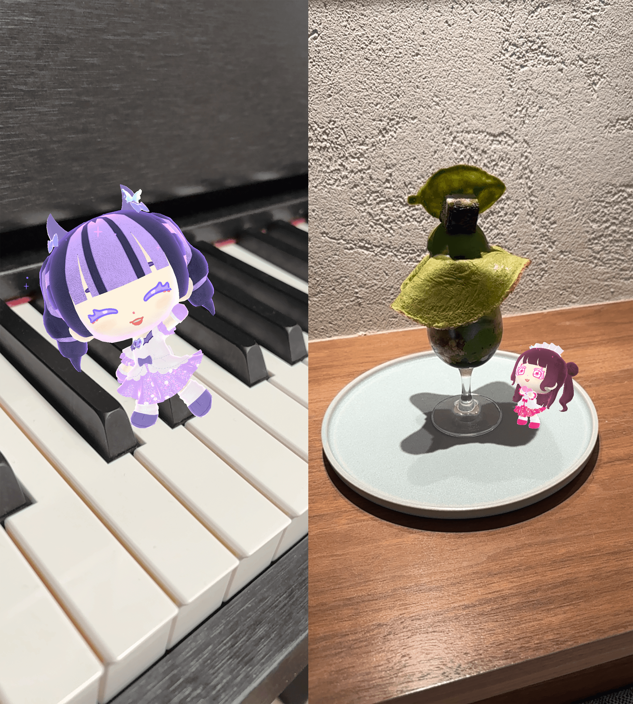 AR機能を搭載したカメラにより、現実の風景にアイドルぬいを表示させることができます。