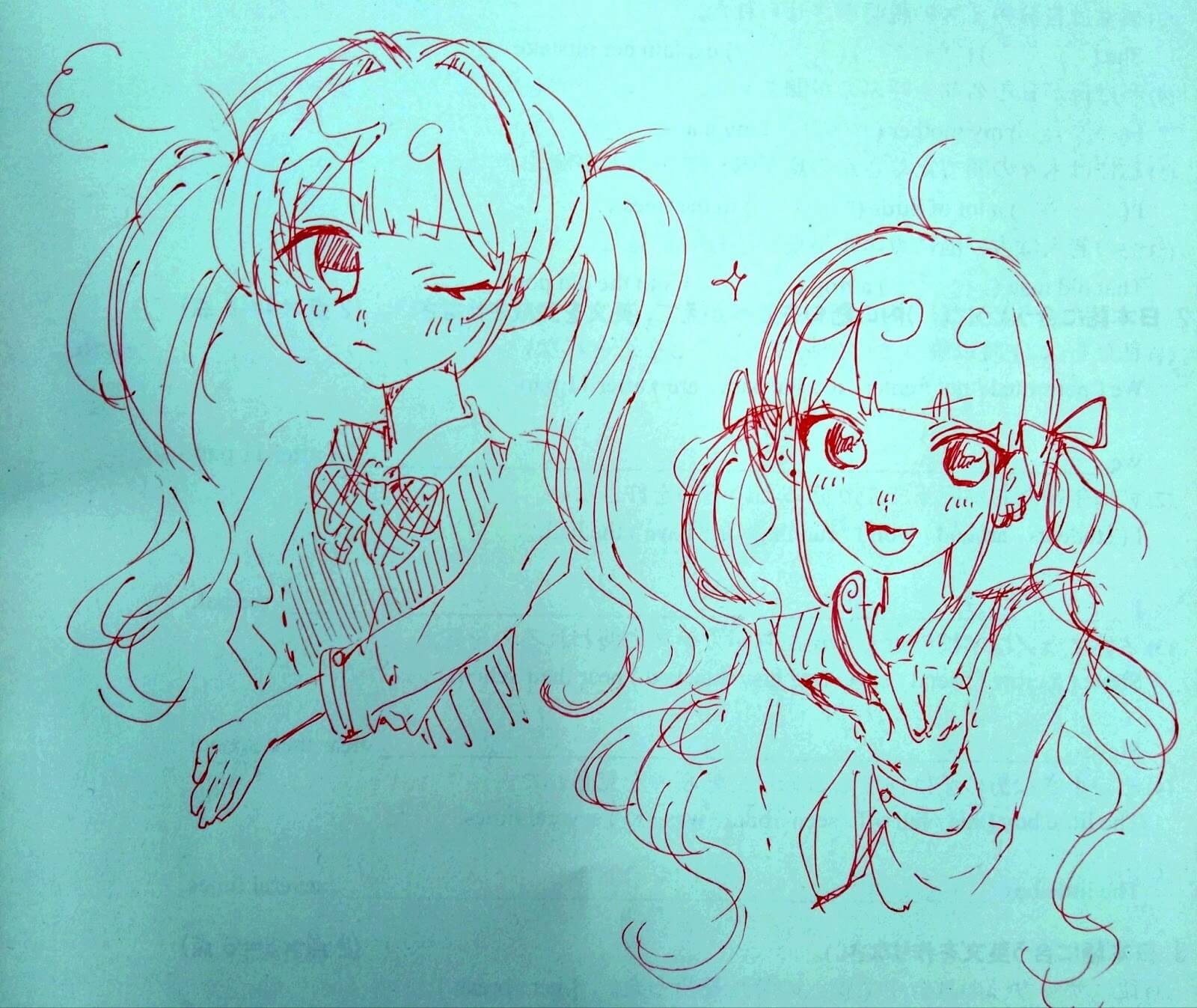 2次元の世界にハマってからは、大好きなキャラクターを模写したり、自分なりにアレンジして描いたりするのが日課になって。最近は学校の授業中にこっそりノートに落書きしちゃったり、iPadを使ってガッツリ色を塗ったり、とにかく毎日何かを描いています!