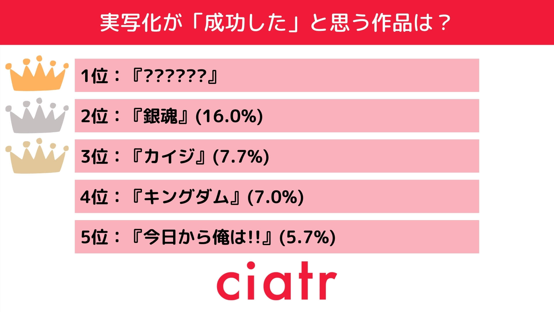 実写化が成功したと思うアニメ・漫画作品を発表!3位『カイジ』2位『銀魂』そして堂々の1位は……。