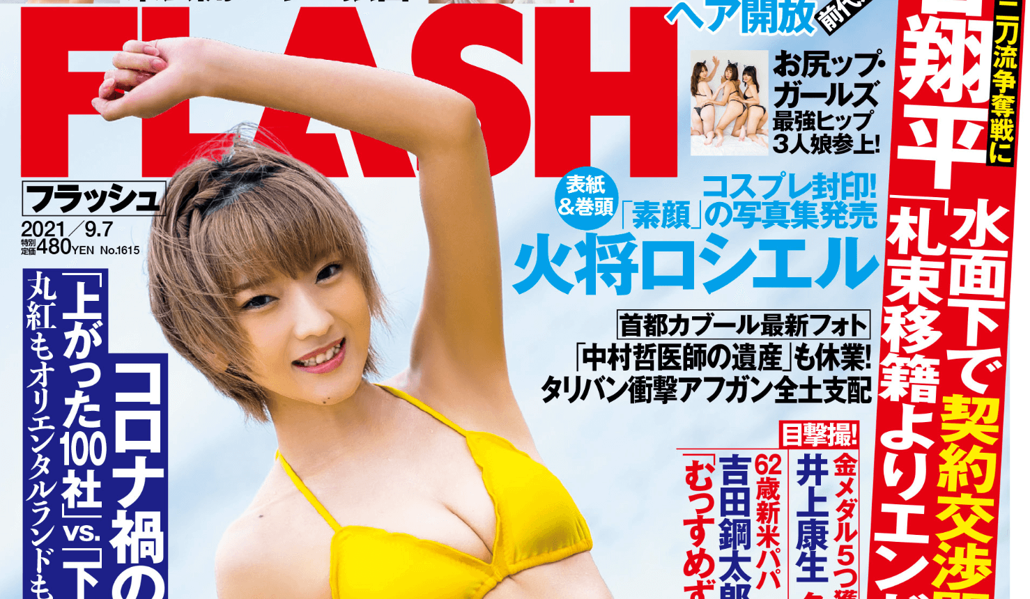 初表紙のトップコスプレイヤー火将ロシエルが飾る!今週のFLASHは本日8月25日発売!