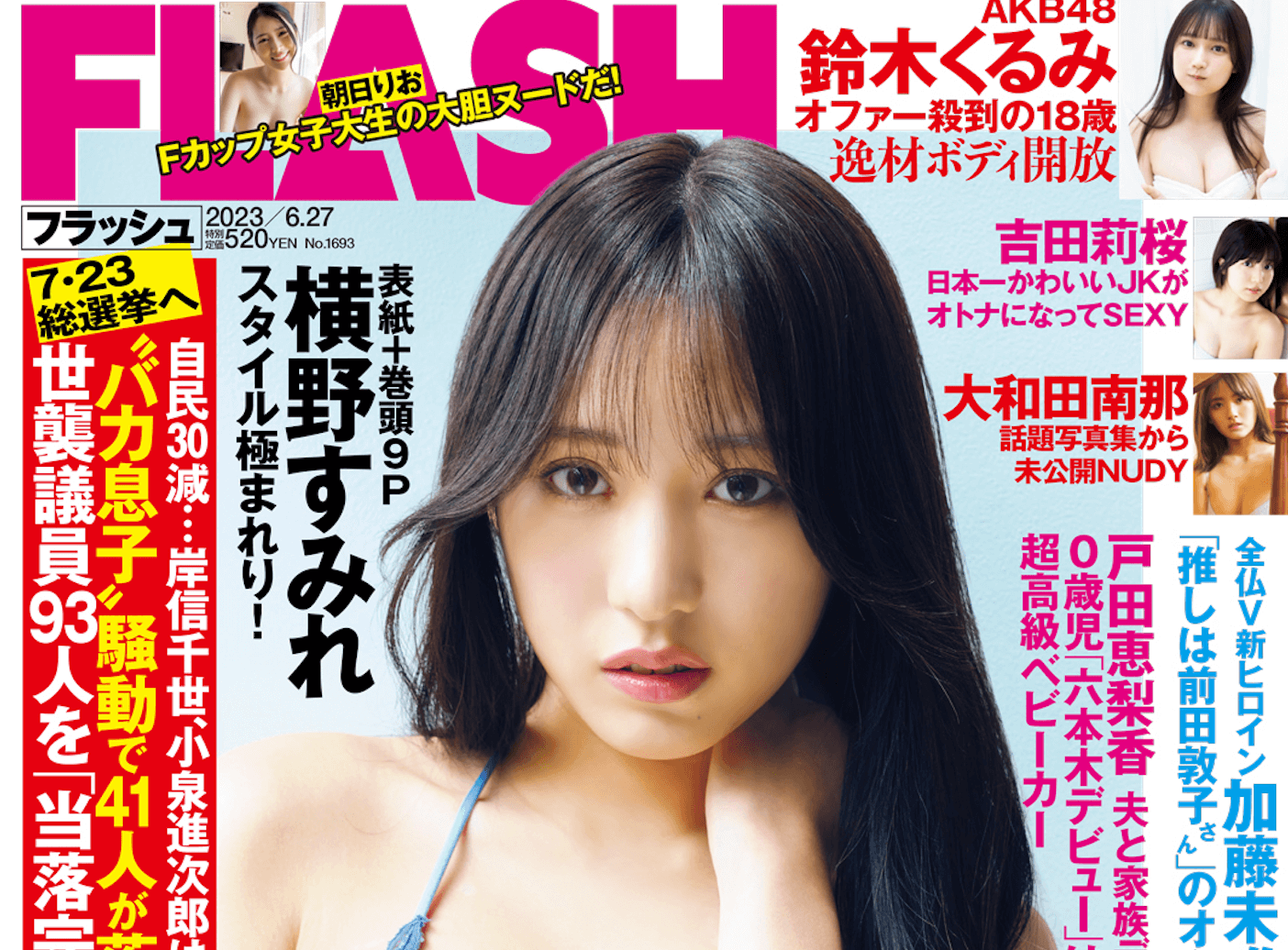 ニュース Talent 横野すみれ・表紙&巻頭で新境地セクシー!デビュー10周年、大和田南那・最新写真集アザーカット!”日本一かわいいJK”吉田莉桜も掲載のFLASH好評発売中!6/14(水) 18:35
