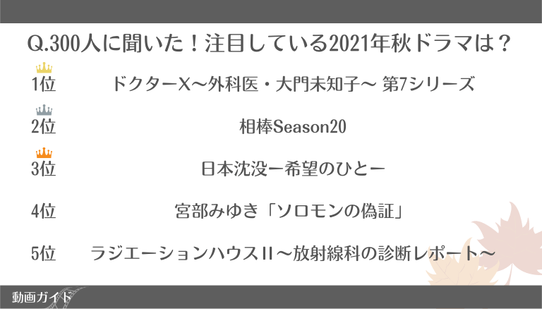 300人に聞いた!注目の2021年秋ドラマの注目度ランキングを調査!年代別で意外な結果が…!?