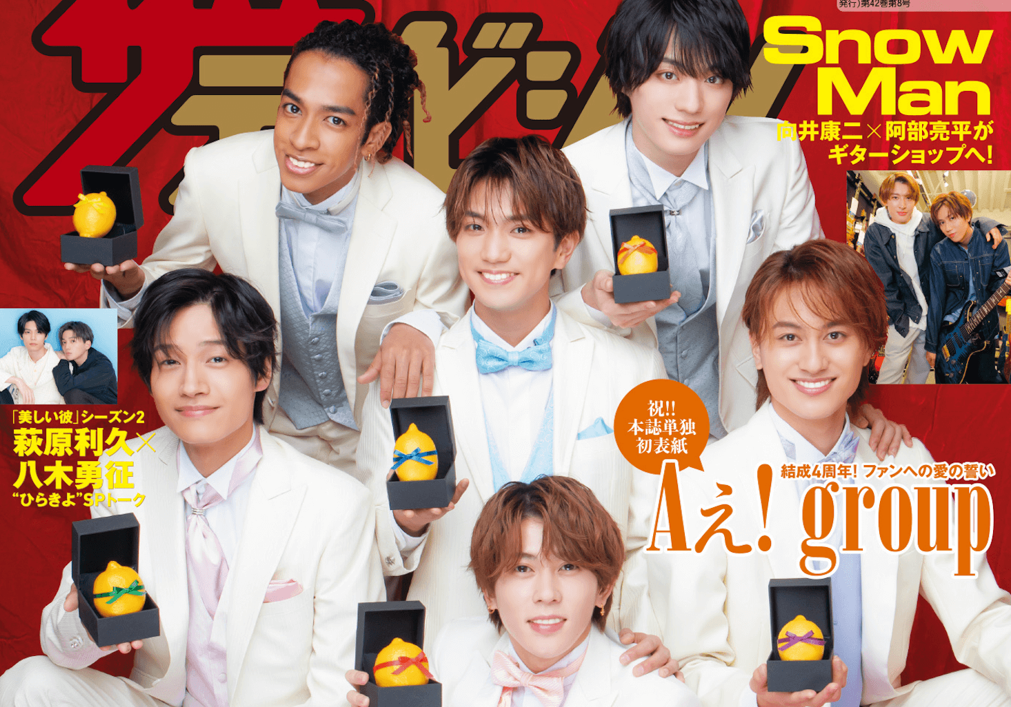 グループ結成4周年を記念してAぇ! groupが本誌単独初表紙!バレンタイン企画としてジャニーズJr.のHiHi Jets、美 少年、IMPACTorsらのキュートなチョコレートメークグラビアを掲載!!