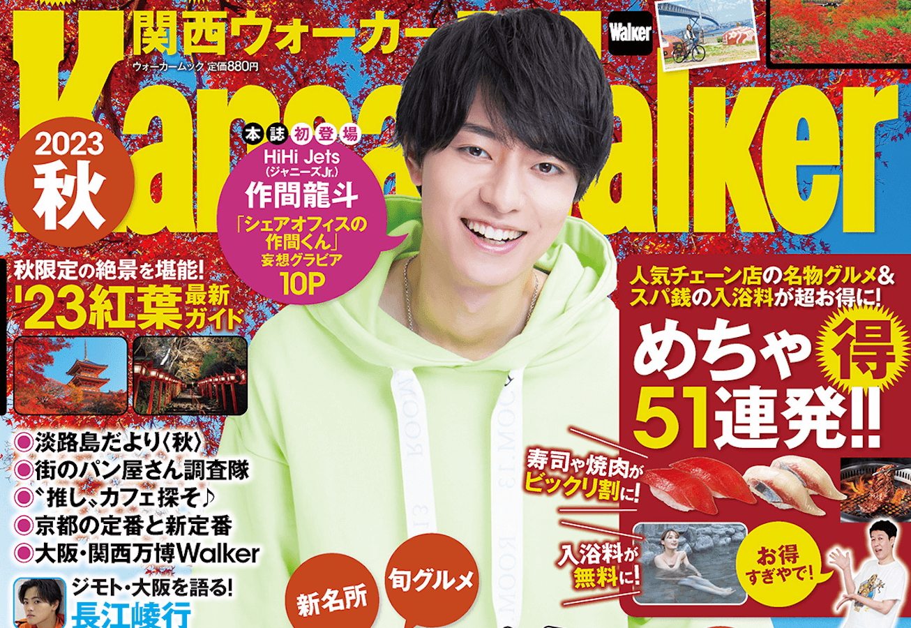 表紙はHiHi Jets・作間龍斗(ジャニーズJr.)が登場!関西の秋遊びを完全網羅したムック『関西ウォーカー2023秋』が好評発売中!