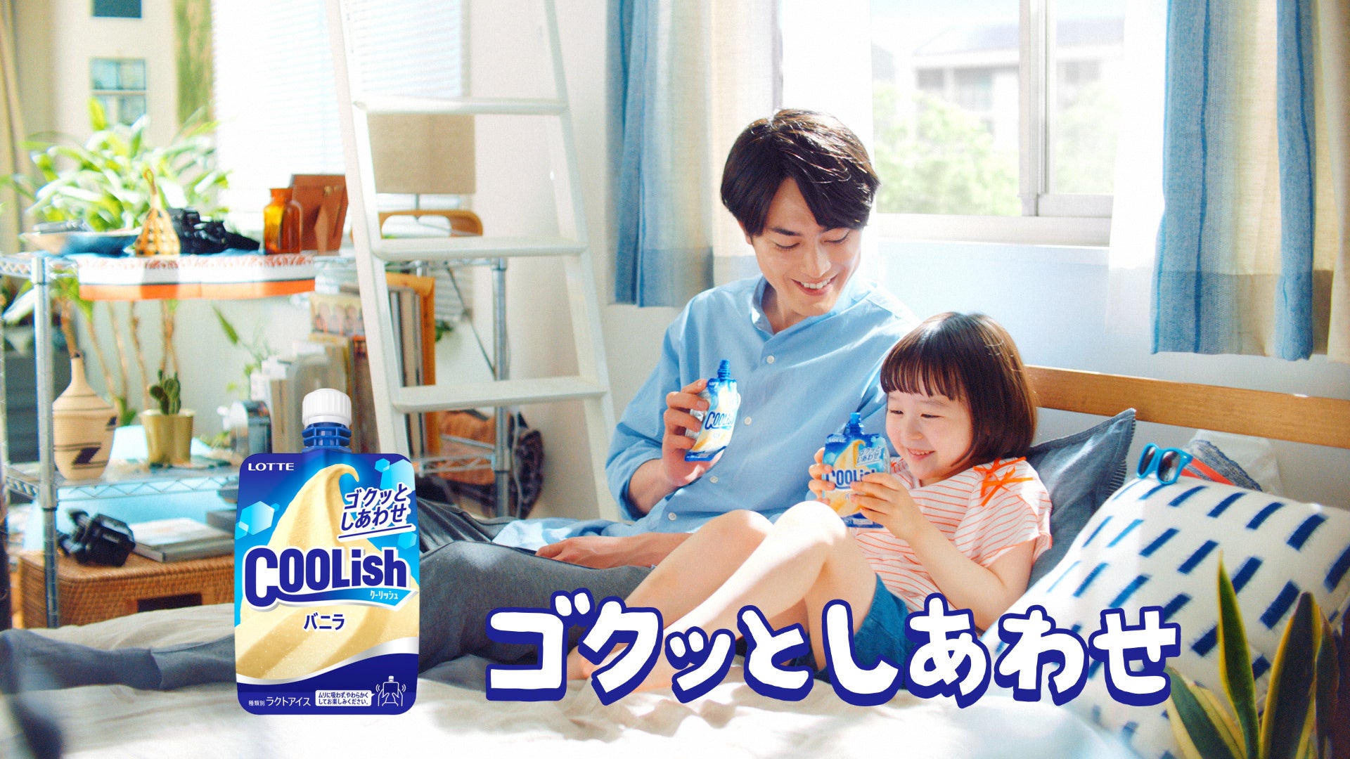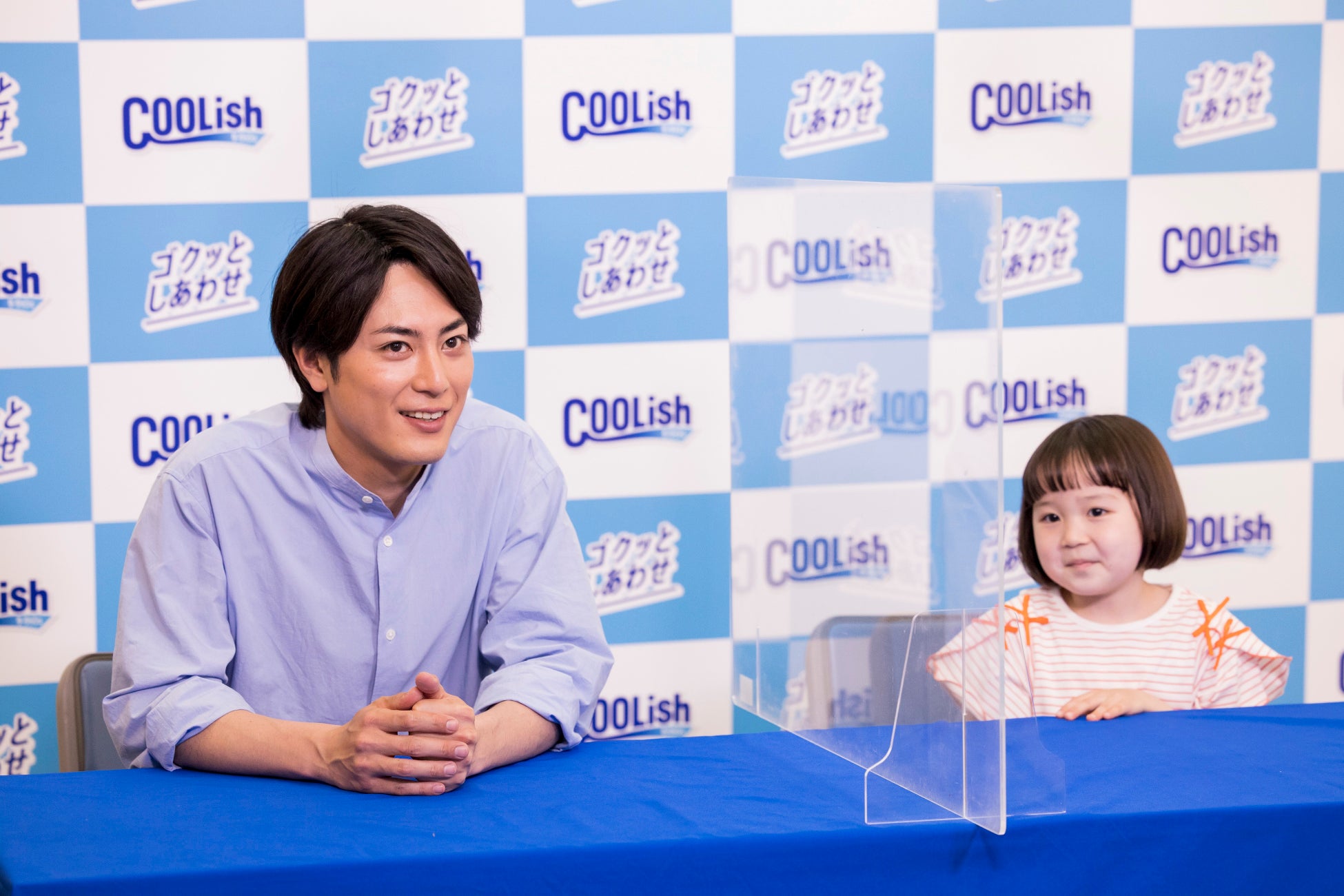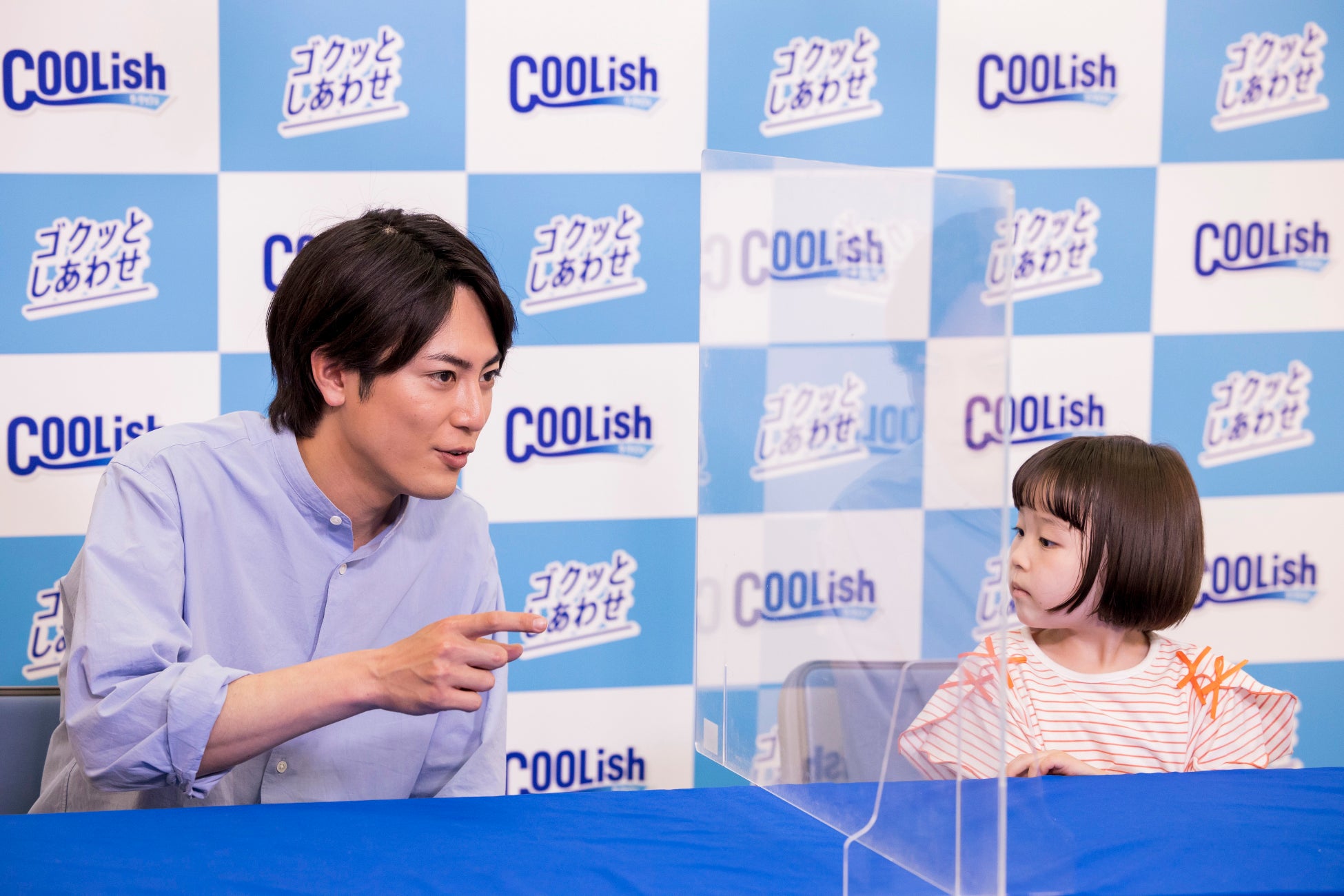 撮影現場で垣間見られたのは、ななちゃんを優しくリードする間宮の姿。ななちゃんが「作戦開始!元気を補給します!」と両手に持った「クーリッシュ」を間宮のおでこと口元に当てるシーンでは、間宮がコミカルにアドリブしながら、ななちゃんの演技をサポート。サングラスを着用してうまく周囲が見えないななちゃんの手を誘導し、「クーリッシュ」を口元に運べるように顔の角度を変えるさりげない気遣いもしていた。