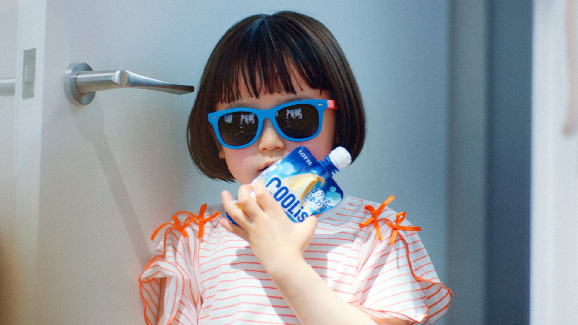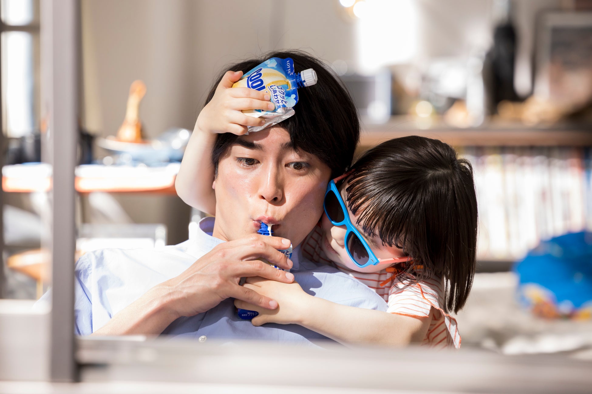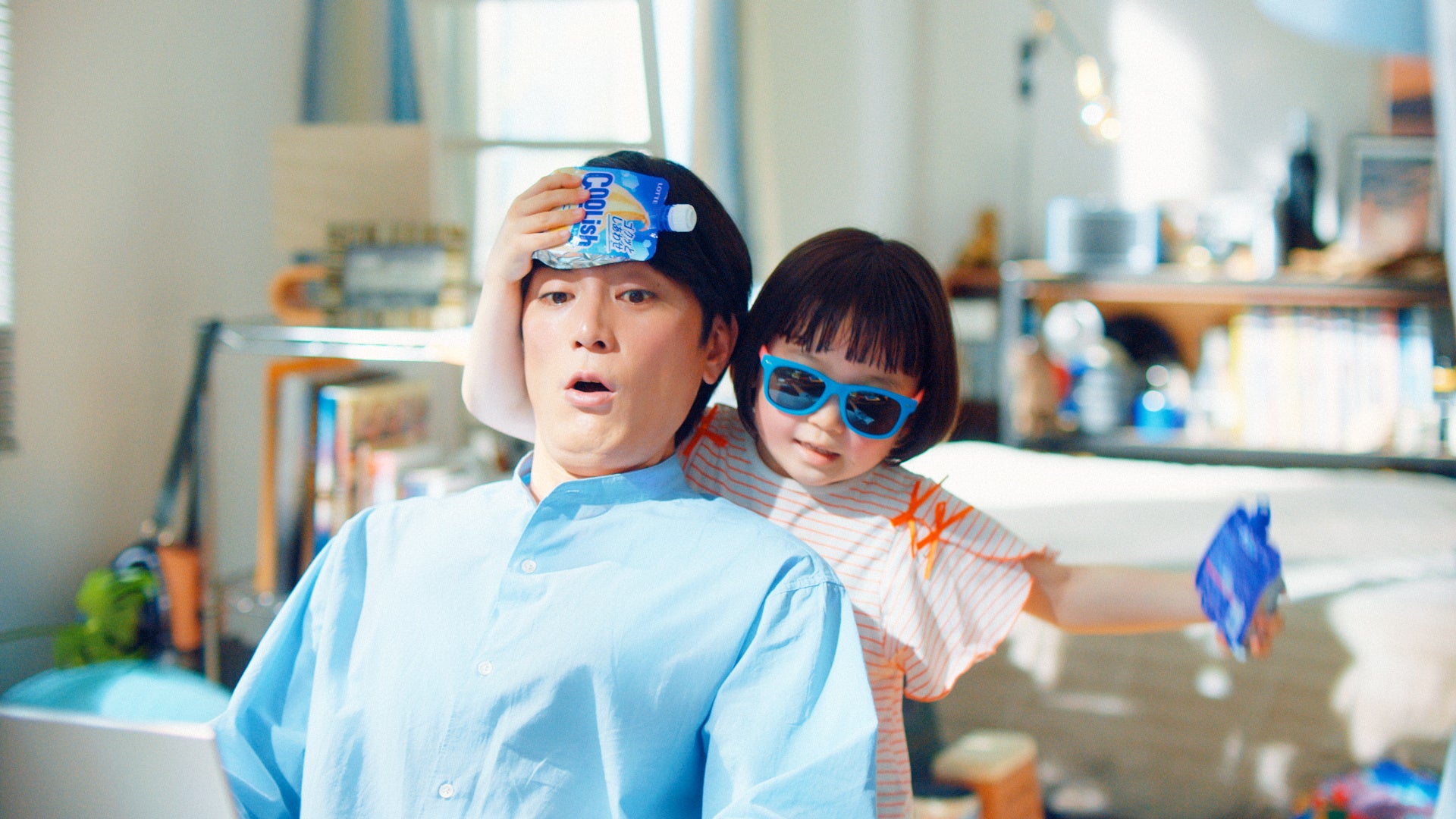 撮影現場で垣間見られたのは、ななちゃんを優しくリードする間宮の姿。ななちゃんが「作戦開始!元気を補給します!」と両手に持った「クーリッシュ」を間宮のおでこと口元に当てるシーンでは、間宮がコミカルにアドリブしながら、ななちゃんの演技をサポート。サングラスを着用してうまく周囲が見えないななちゃんの手を誘導し、「クーリッシュ」を口元に運べるように顔の角度を変えるさりげない気遣いもしていた。