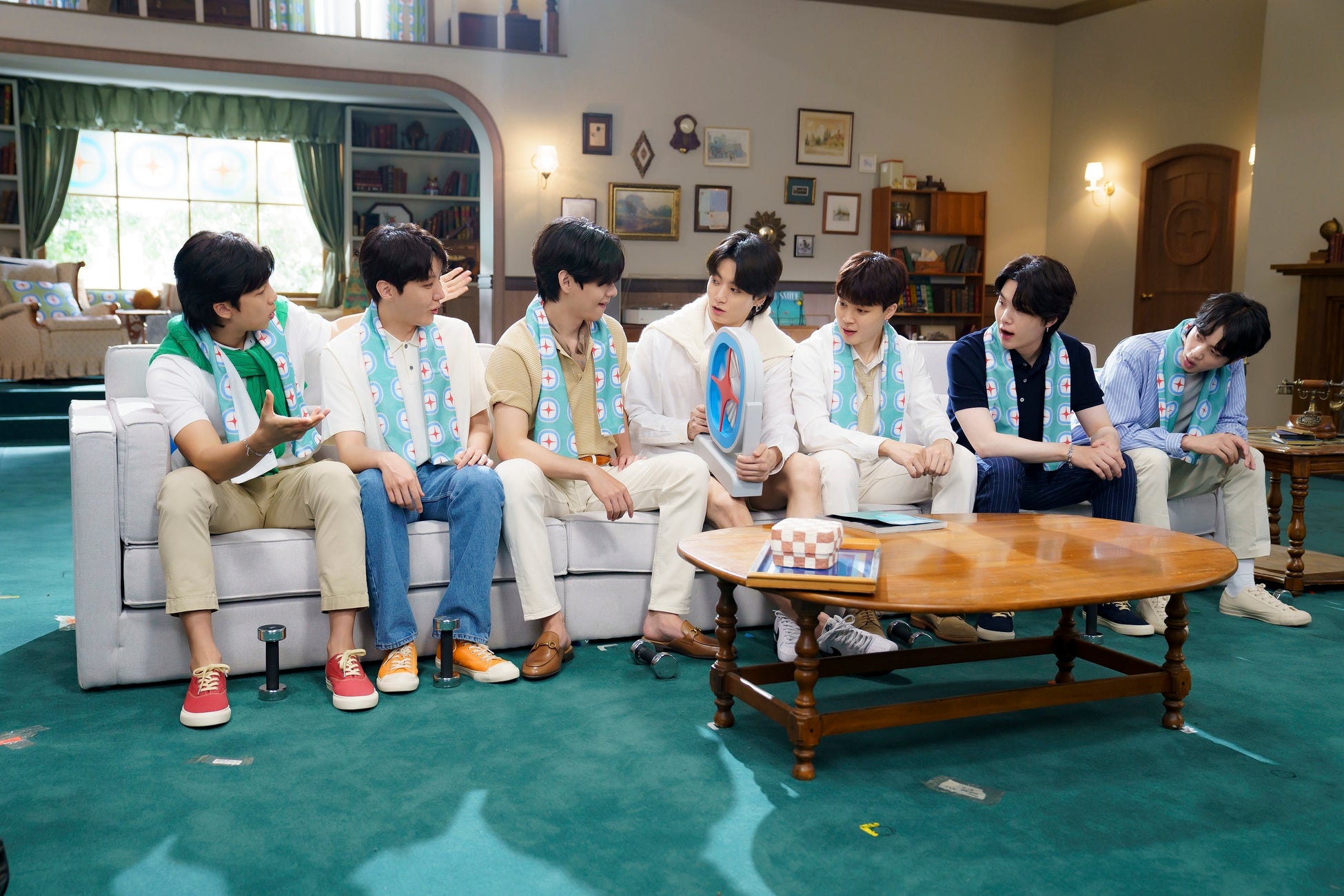 RMとJINがリビングに入ると、部屋の一角にビーチパラソルやビーチチェア、浮き輪などを広げ、壁には巨大な海の絵を掲げ、夏気分を満喫しているSUGAとV。そんな散らかった空間で楽しんでいる様子に呆れたRMとJINは、厳しい表情。昨年の「Smile Cleaning篇」に引き続き、また怒られる!とSUGAとVが思った矢先、RMとJINはキシリトールガムを噛んで笑顔をみせる。すると魔法がかかり、ふたりの目元にはサングラスが、そして足元にはボールプールが出現!リビングが更に夏模様に。SUGAとVが驚いていると反対側から聞き慣れない動物の鳴き声が。顔を向けると、J-HOPE、JIMIN、そしてJUNG KOOKが夏らしいグッズを手に、巨大なオウムとの記念撮影を楽しんでいるのだった。