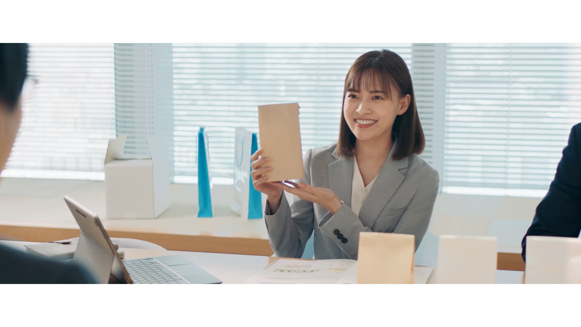 クラレ社員側シーンの設定は顧客の会議室で、撮影はクラレ本社で実施した。また、実際に客先訪問時に持参する紹介用の資料やサンプル、紙袋等を小道具として使用し、美術スタッフの協力も得ながらよりリアルな演出にこだわった。