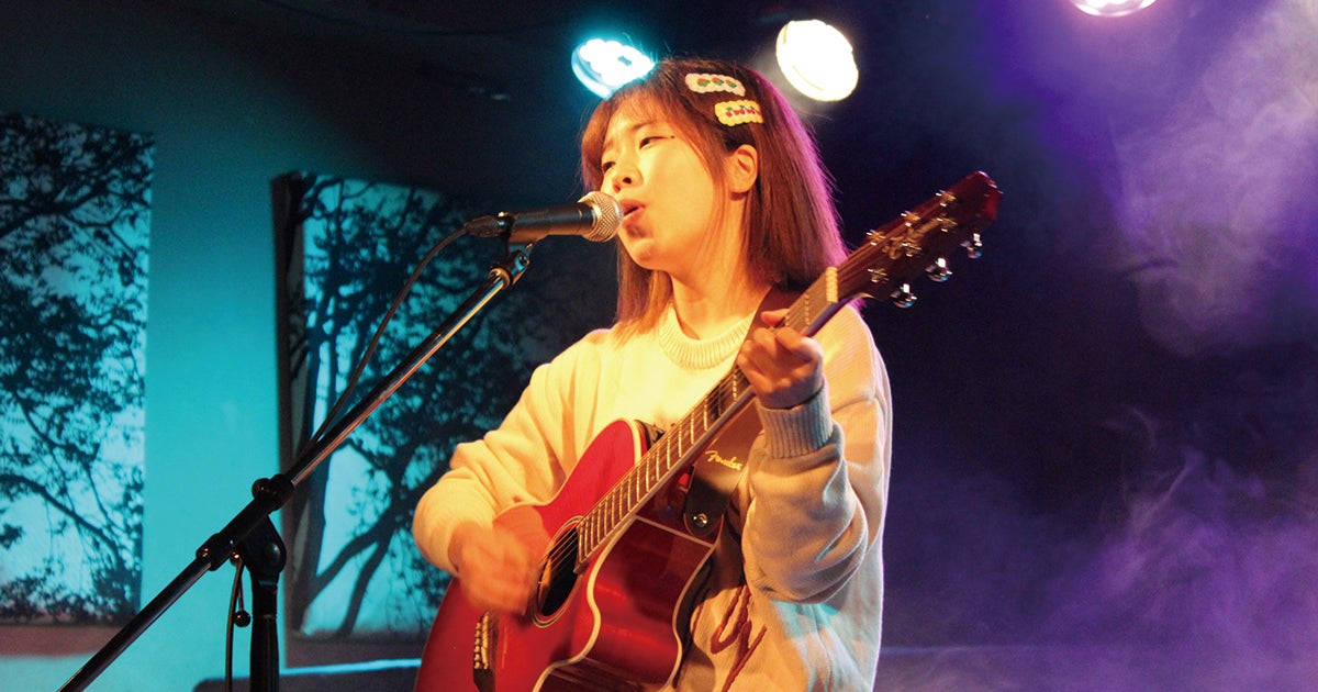 2番目に登場したのは、久々に渋谷gee-ge.でのライブとなったARISA。1曲目に「きっと大丈夫」を披露し簡単な自己紹介のあとギターを手に持ち、儚くも伸びやかな歌声で「one」を披露。なかなか想いを伝えられない女の子の歌「曖昧」、大切なものを想い浮かべながら聴いて欲しい「長い夢」を立て続けにパフォーマンスしていく。続いて、しっとりとしたギターの音色が心地よい「ラブソング」で会場を彼女の世界観で染めていく。ラストはいままでとは異なったロック調の「start」を披露し、久々に渋谷gee-ge.でのライブを締めくくった。
