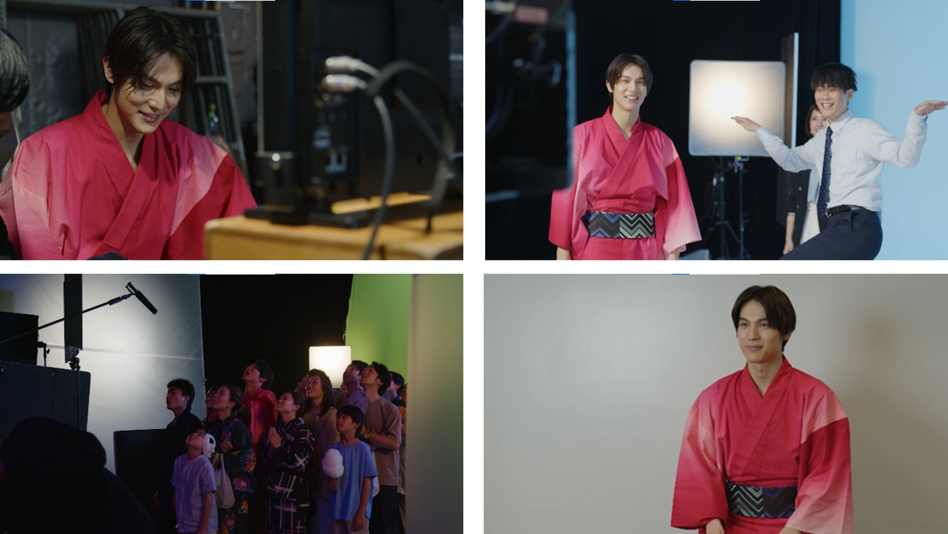 「おはようございます!」と元気な挨拶の声と共に、赤色のさわやかな浴衣姿でスタジオ入りした中川大志。スタジオ入りを待ち受けていた池田模範堂の社員と談笑を交わす和やかな雰囲気で撮影がスタートした。1テイク目が始まる直前では、撮影スタッフからのオリエンテーションを、モニターを見つめながら真剣に聞く姿も。今回の撮影はすべて背景は合成のため、ときおり実際のシーンを思い浮かべながら頭の中でシミュレーションをするなど演技に集中する様子も見られた。