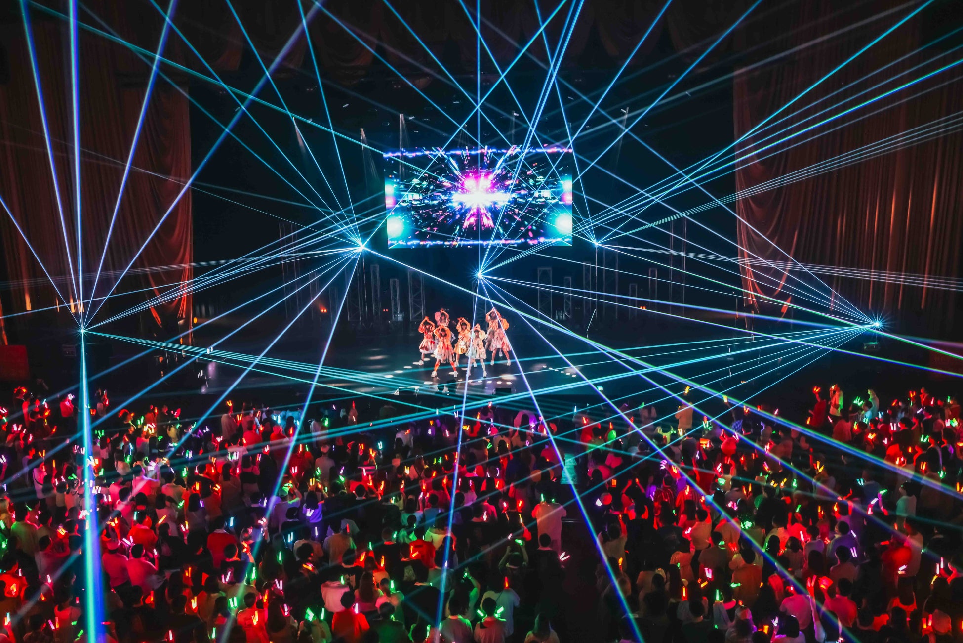 オープニングSEとともにレーザービームが会場内を飛び交い、期待に満ちた空気の中「世界はキミからはじまる」でライブが幕開け。