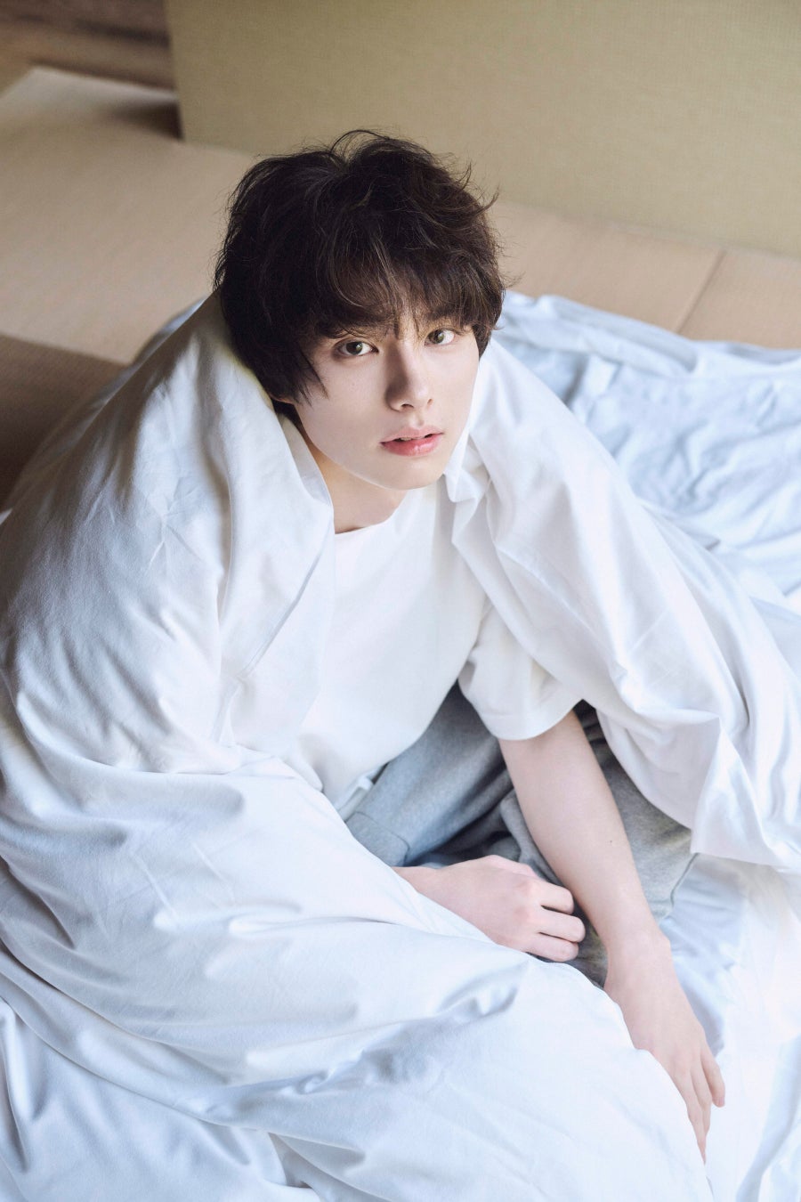 「本田響矢と行く温泉旅」をテーマに、街歩きや寝起きシーン、さらには温泉でのカットも。ファッションとビジュアルをメインにした面のクールな雰囲気とはガラッと変わり、こちらは素の本田を“0距離”で楽しめるような内容になっています。
