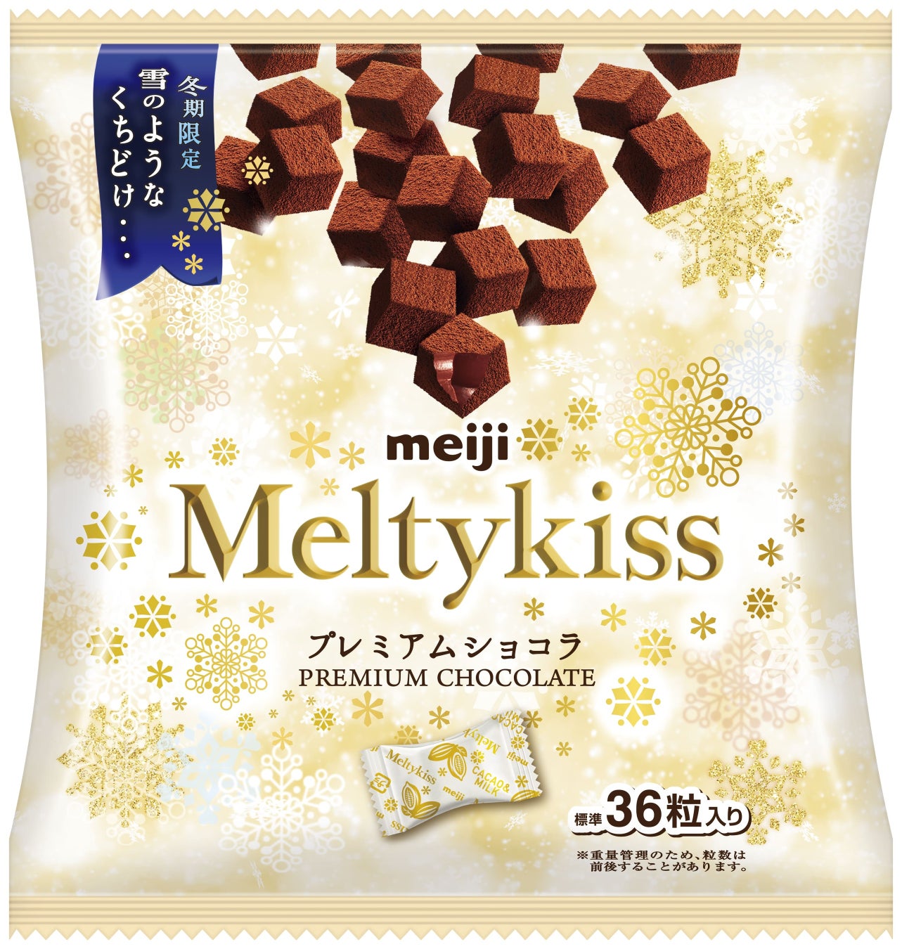 「プレミアムショコラ袋」は、多くのユーザーがいるメルティーキッスショコラ好きな方のために、大袋形態を発売時のラインアップに追加しました。