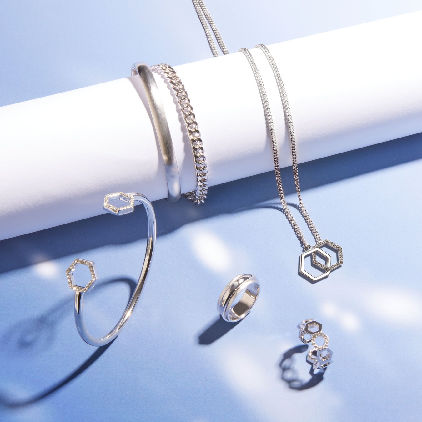 このコレクションは、”冬のダイヤモンド” とも称される冬の大六角形からインスパイアを受け、冬の夜空に輝く星々の輝きを六角形のデザインで表現しています。