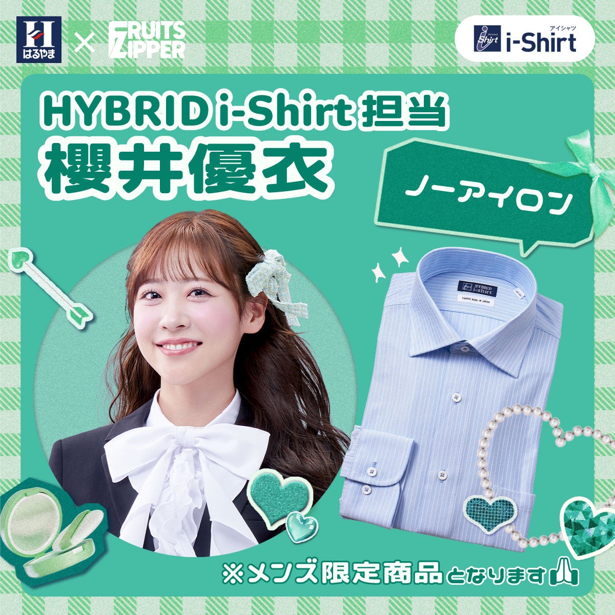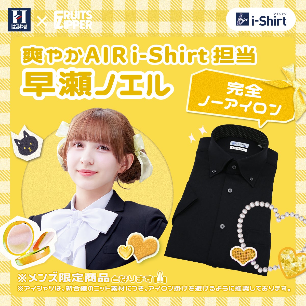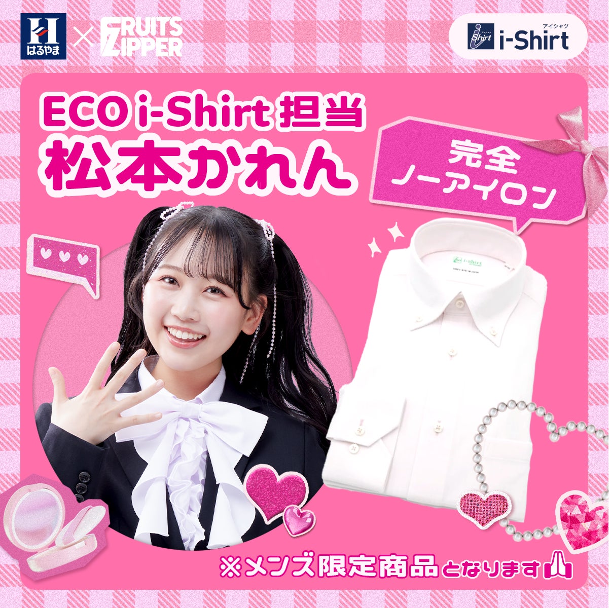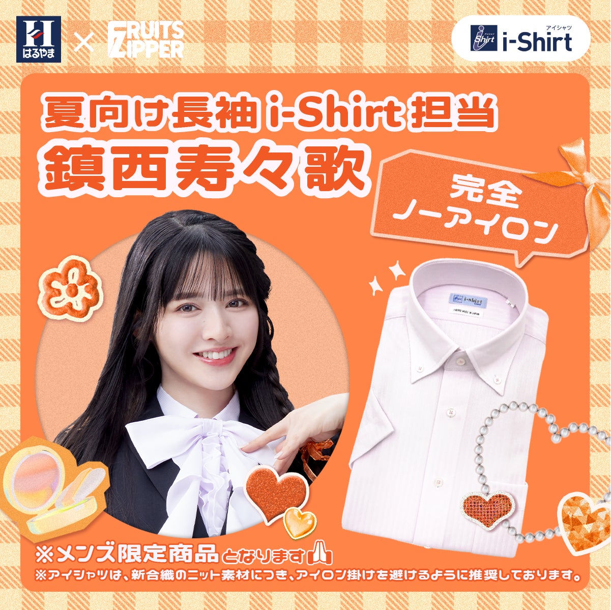 2025年3月14日から、FRUITS ZIPPERのメンバー7人がそれぞれ担当するアイシャツの特徴や魅力について、はるやま公式インスタグラムアカウントやX公式アカウントで発信しています。アイシャツの7つの魅力を、FRUITS ZIPPERらしい形で紹介することで、完全ノーアイロンはもちろん、それ以外の「ヨイトコロ」を知っていただける企画です。