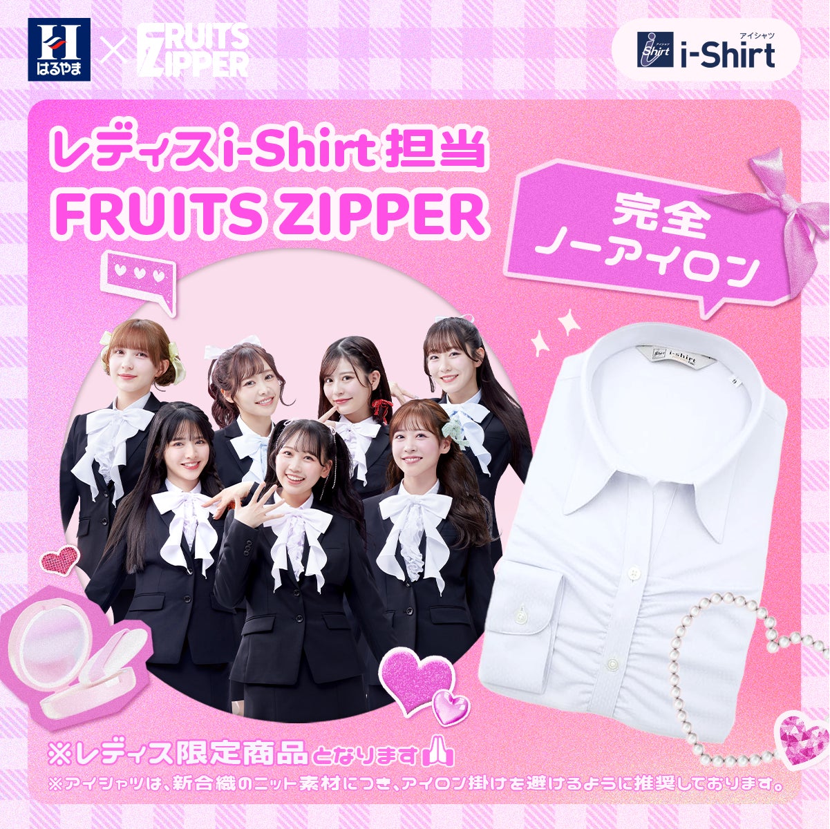2025年の春、入学や入社など新しい環境へ一歩踏み出すフレッシャーズを応援するはるやまの企画に登場いただいたFRUITS ZIPPERのメンバーに「はるやま広報部 アイシャツ係」に就任いただき、1,000万枚を超える販売を実現したアイシャツの魅力について広く皆様に広報していただきます。